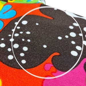 70年代を思わせるサイケデリックな花柄が派手レトロで印象的。