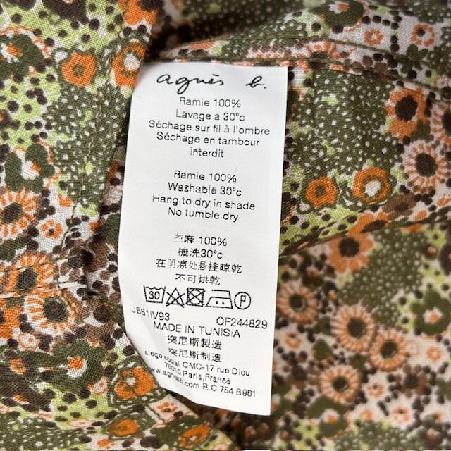 中古 アニエスベーオム agnes b. homme 長袖 リネンシャツ クリーニング済み 花柄 ダブルポケット 麻 メンズ 38サイズ