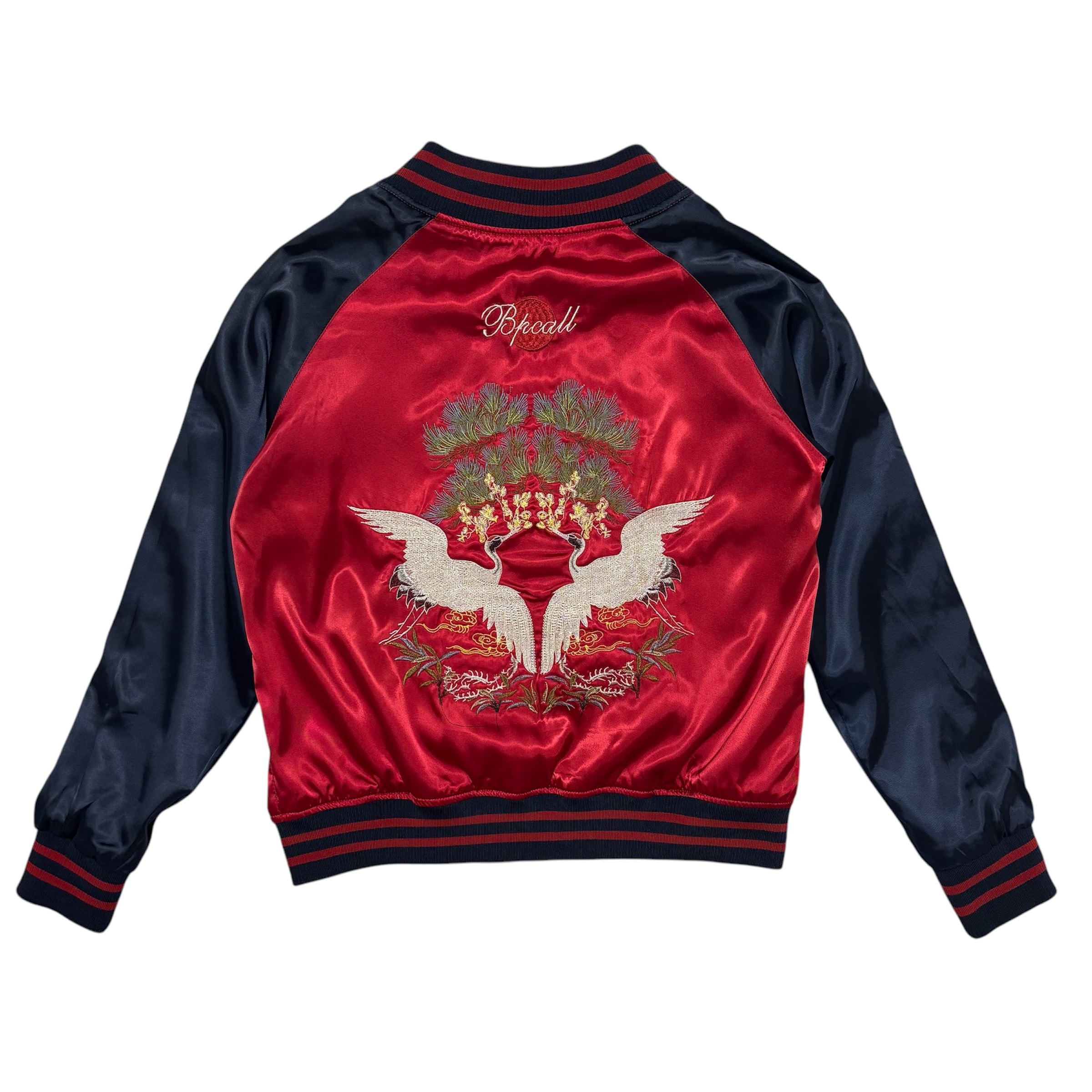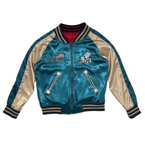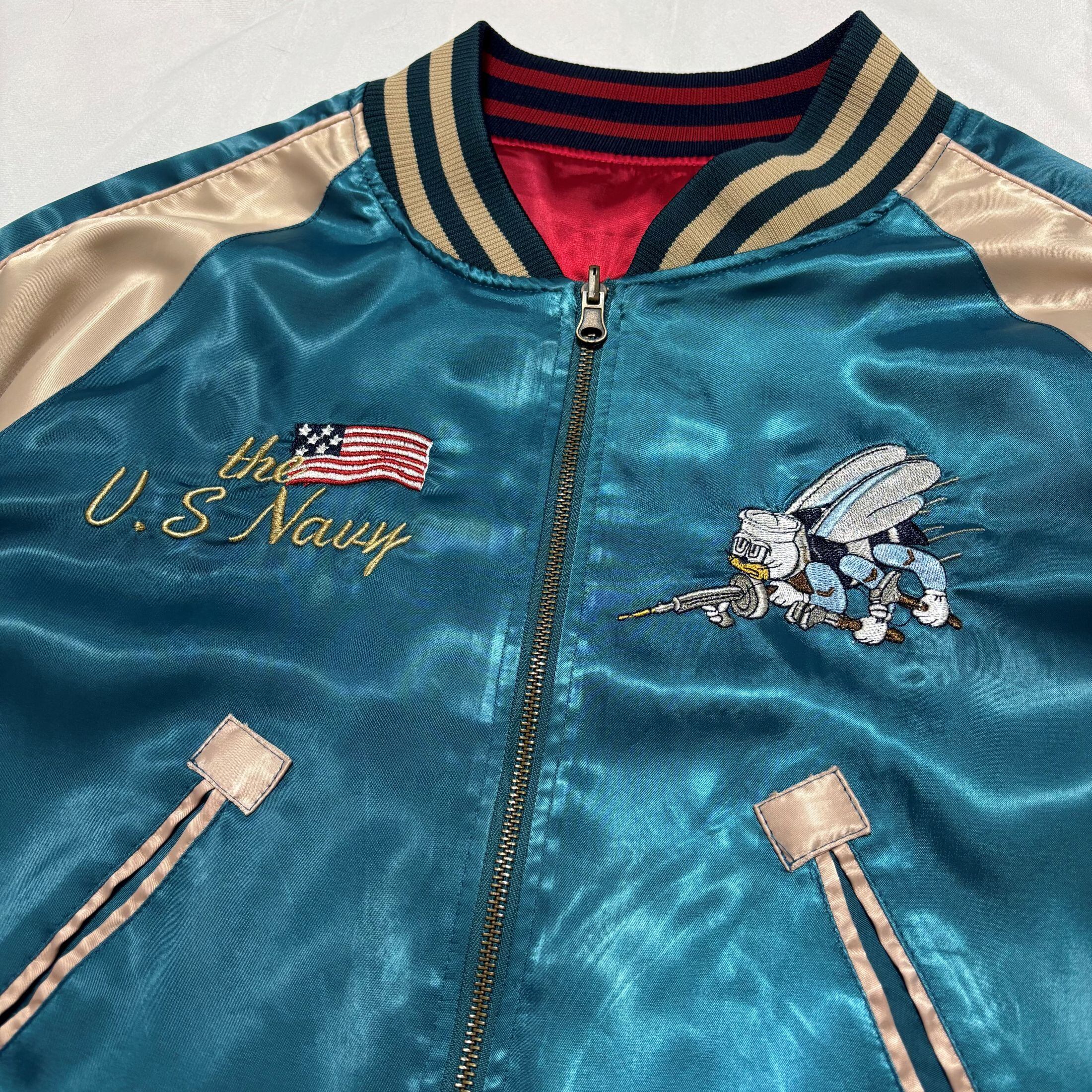 中古 U.S.NAVY SEABEES BVC スカジャン クリーニング済み リバーシブル 蜂 鶴 サテン素材 レディースL