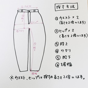 ウエスト48cm/ヒップ60cm/股上32cm/股下81cm/わたり幅38cm/スソ幅23.5cm (平置きにて採寸)