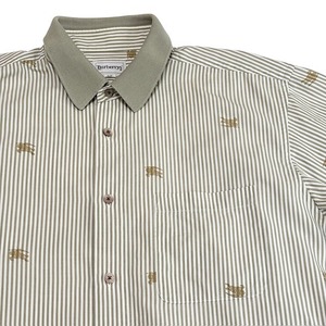 古着 バーバリーズ Burberrys 半袖シャツ クリーニング済み エクストリアンナイト ストライプ柄 緑 メンズ Lサイズ