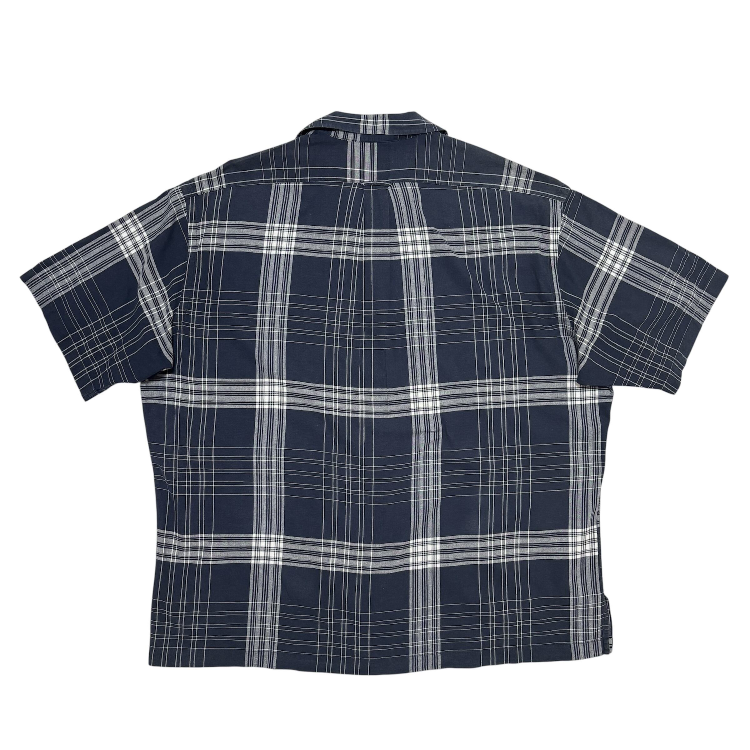 CALDWELL(コールドウェル)モデル。ラルフローレンの開襟シャツシリーズ。ネイビーとホワイトのチェック柄に同色の刺繍ポロプレイヤーロゴが入る1着。