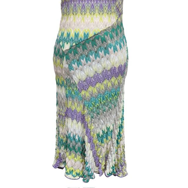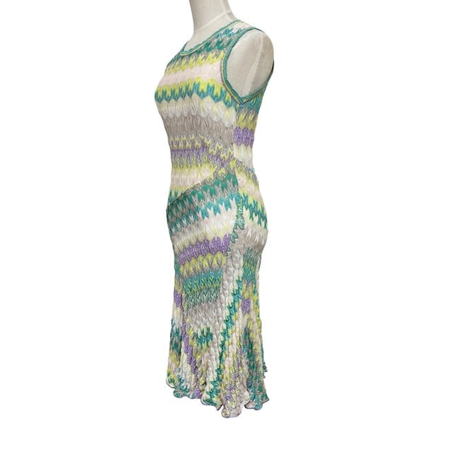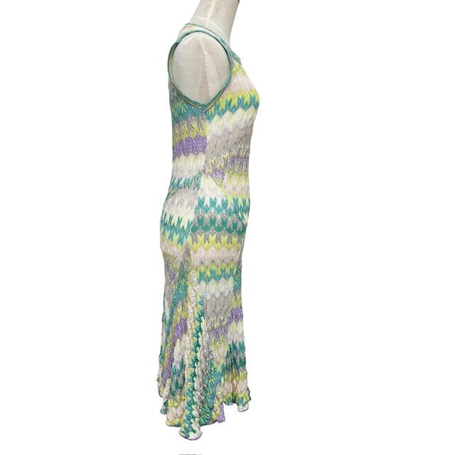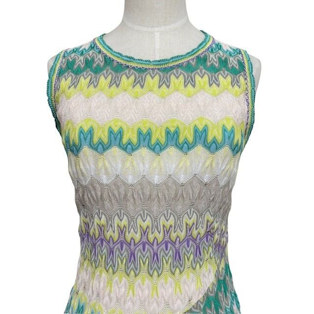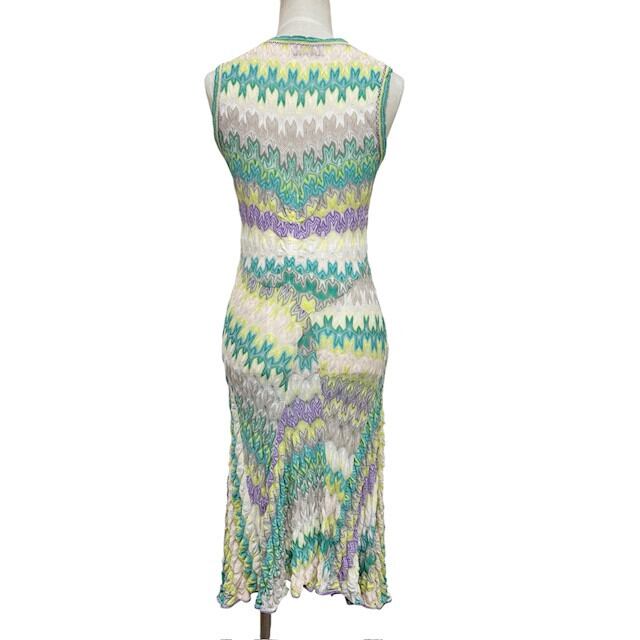 中古 ミッソーニ MISSONI ノースリーブ ニット ワンピース クリーニング済み ジグザグ カラフル イタリア製 レディース サイズ40