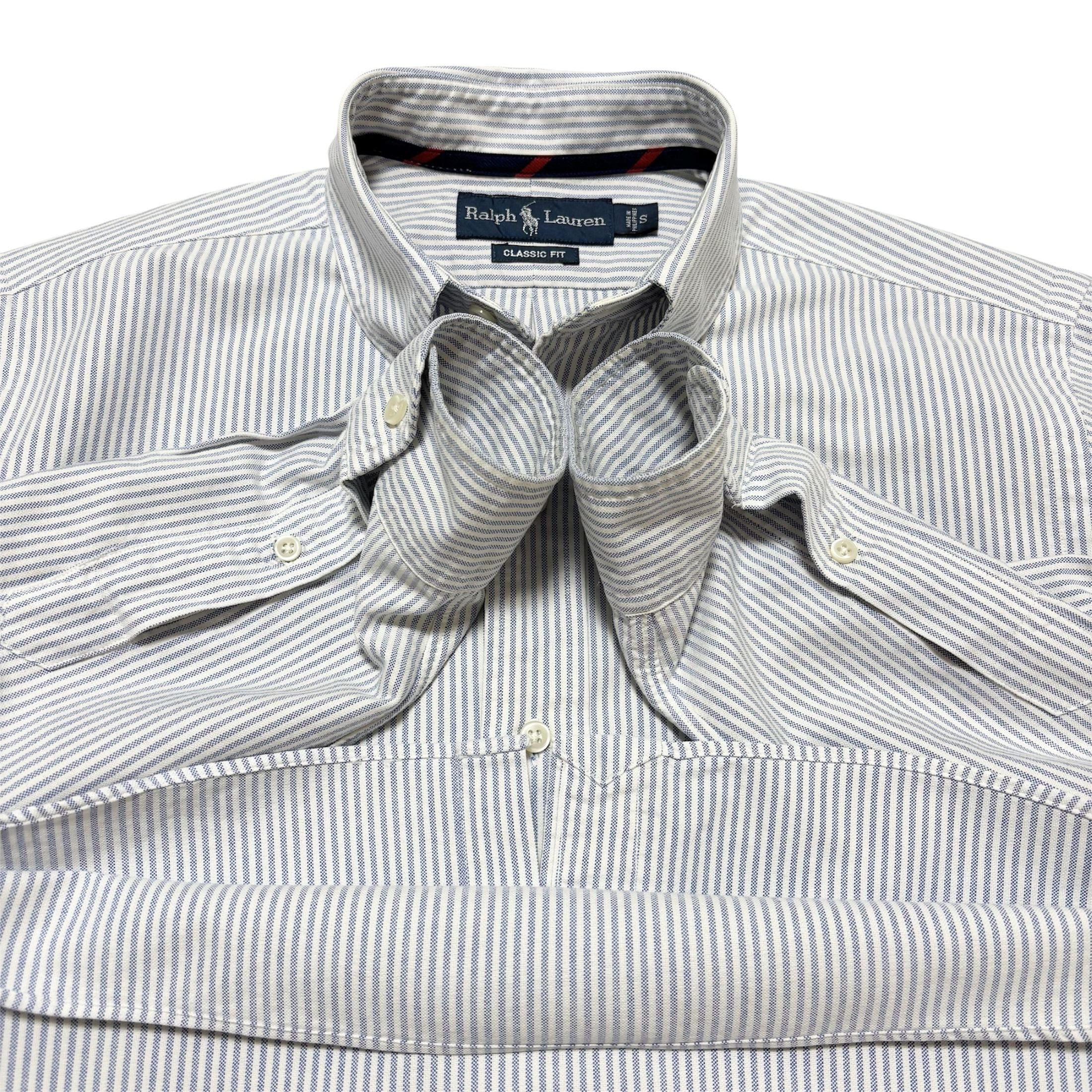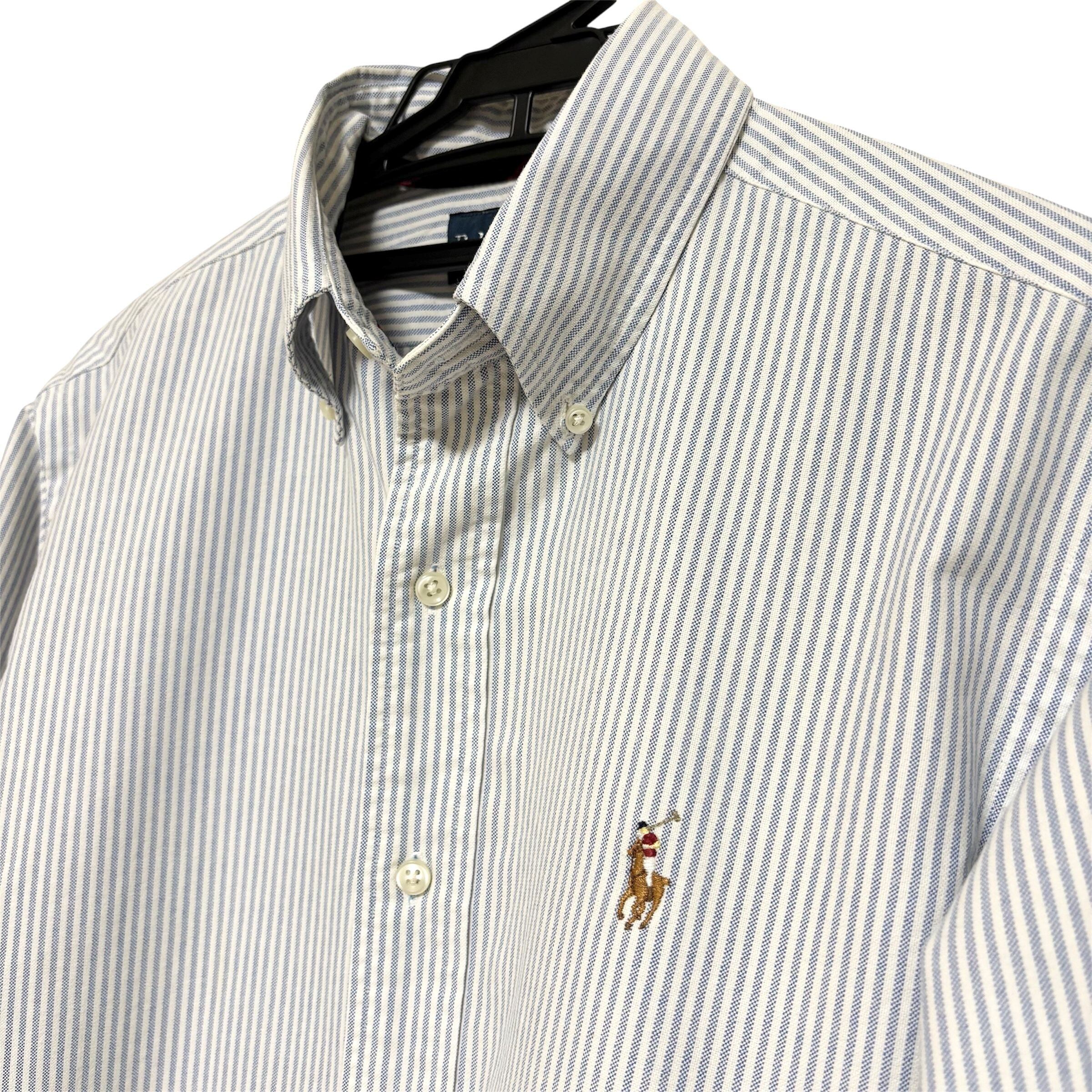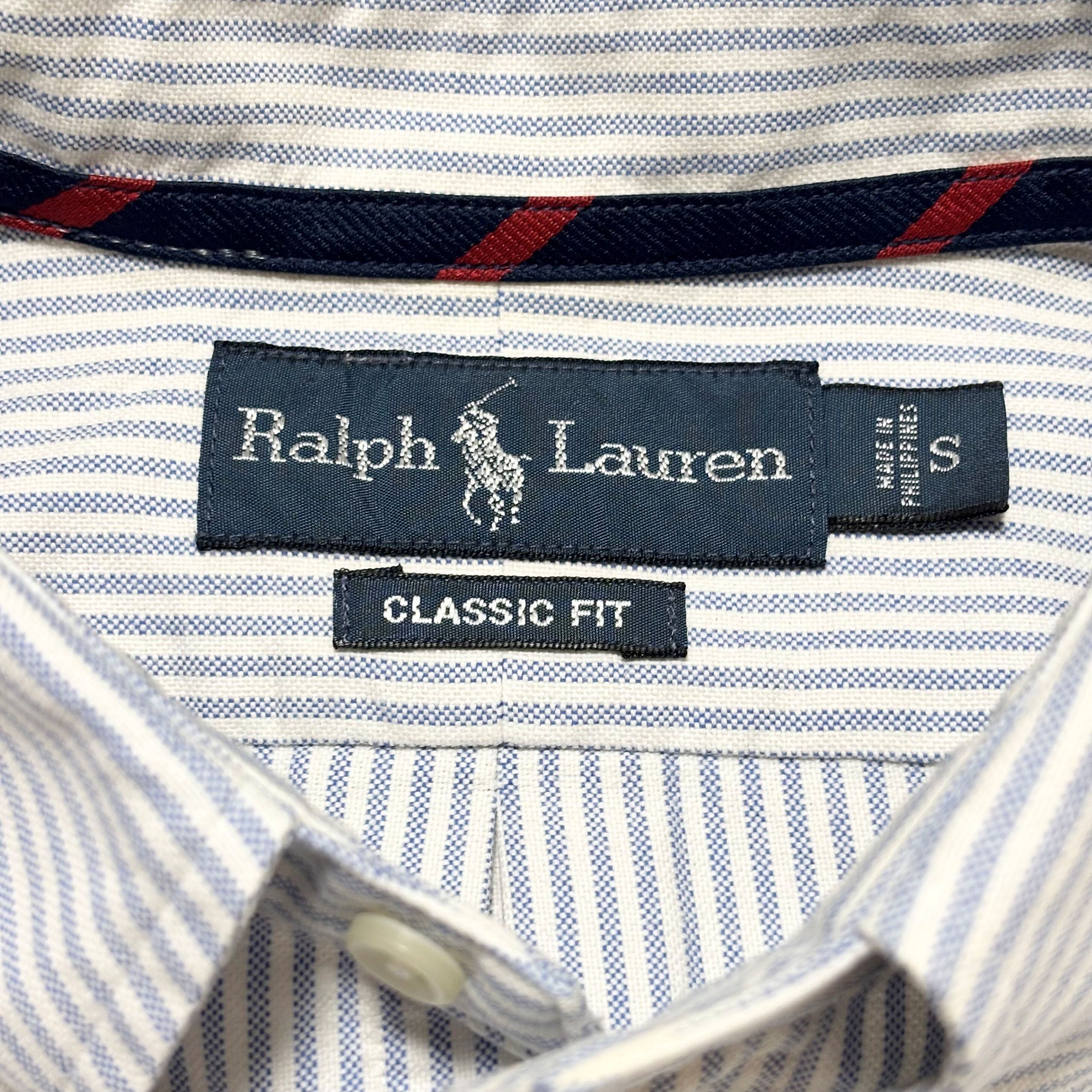 中古 ラルフローレン Ralph Lauren ボタンダウンシャツ クリーニング済み クラシックフィット 青白 ストライプ メンズ S