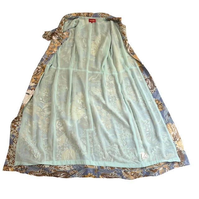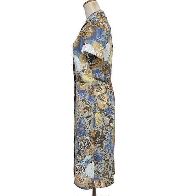 中古 ケンゾー KENZO 半袖 シャツワンピース クリーニング済み 花柄 ブルー系統 ヴィンテージ レディース サイズ2
