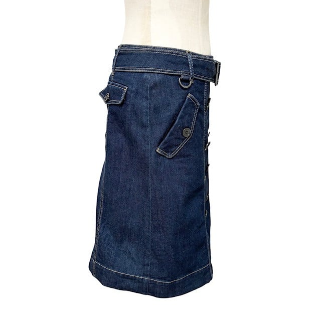 中古 バーバリーロンドン BURBERRY LONDON デニムスカート クリーニング済み 膝丈 付属ベルト付き レディース サイズ38