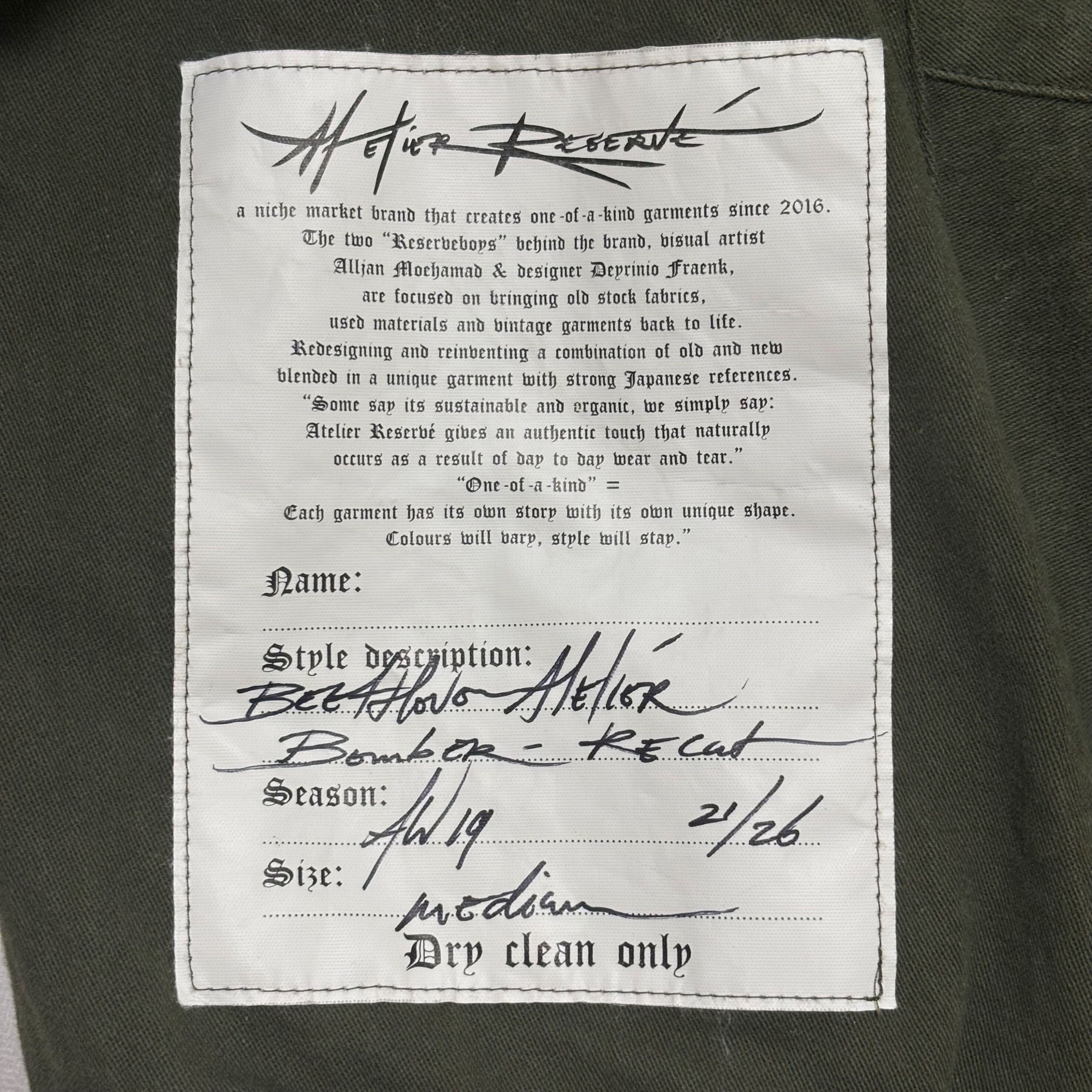 デンハム DENHAM×アトリエリザーブ ATELIER RESERVE コラボ 数量限定 中綿ジャケット MA-1タイプ
