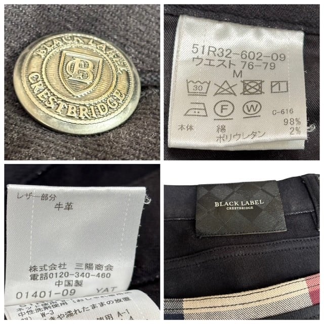 中古 ブラックレーベル クレストブリッジ BLACKLABEL CRESTBRIDGE コットンパンツ 綿パン クリーニング済み 黒 テーパード メンズ Mサイズ