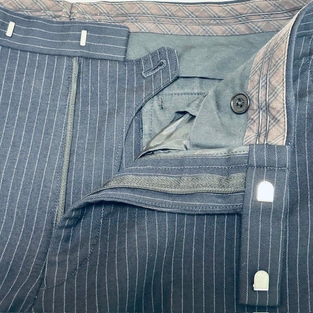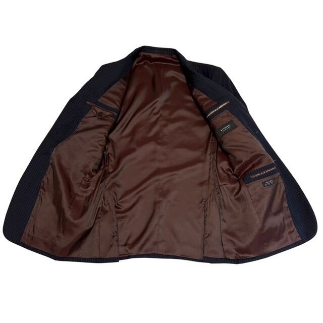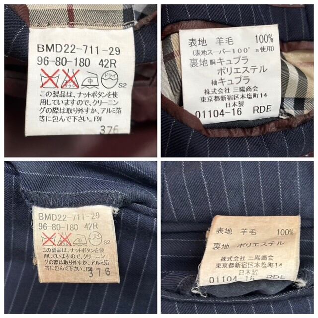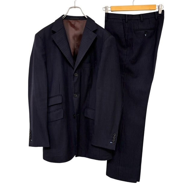 中古 バーバリーブラックレーベル BURBERRY BLACKLABEL スーツ上下 クリーニング済み ストライプ柄 ネイビー スーパー100s 3つボタン メンズ サイズ 42R