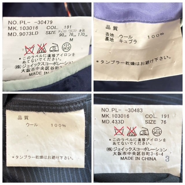 実寸サイズ/(ジャケット)肩幅43.5cm/身幅48cm/着丈71cm/袖丈60cm(スラックス)ウエスト38.5cm/ヒップ48cm/股上23cm/股下78.5cm/わたり31.5cm/裾幅19.5cm