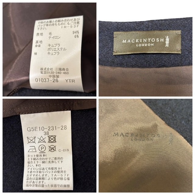 中古 マッキントッシュロンドン ノーカラージャケット クリーニング済み ウール ネイビー レディース サイズ38