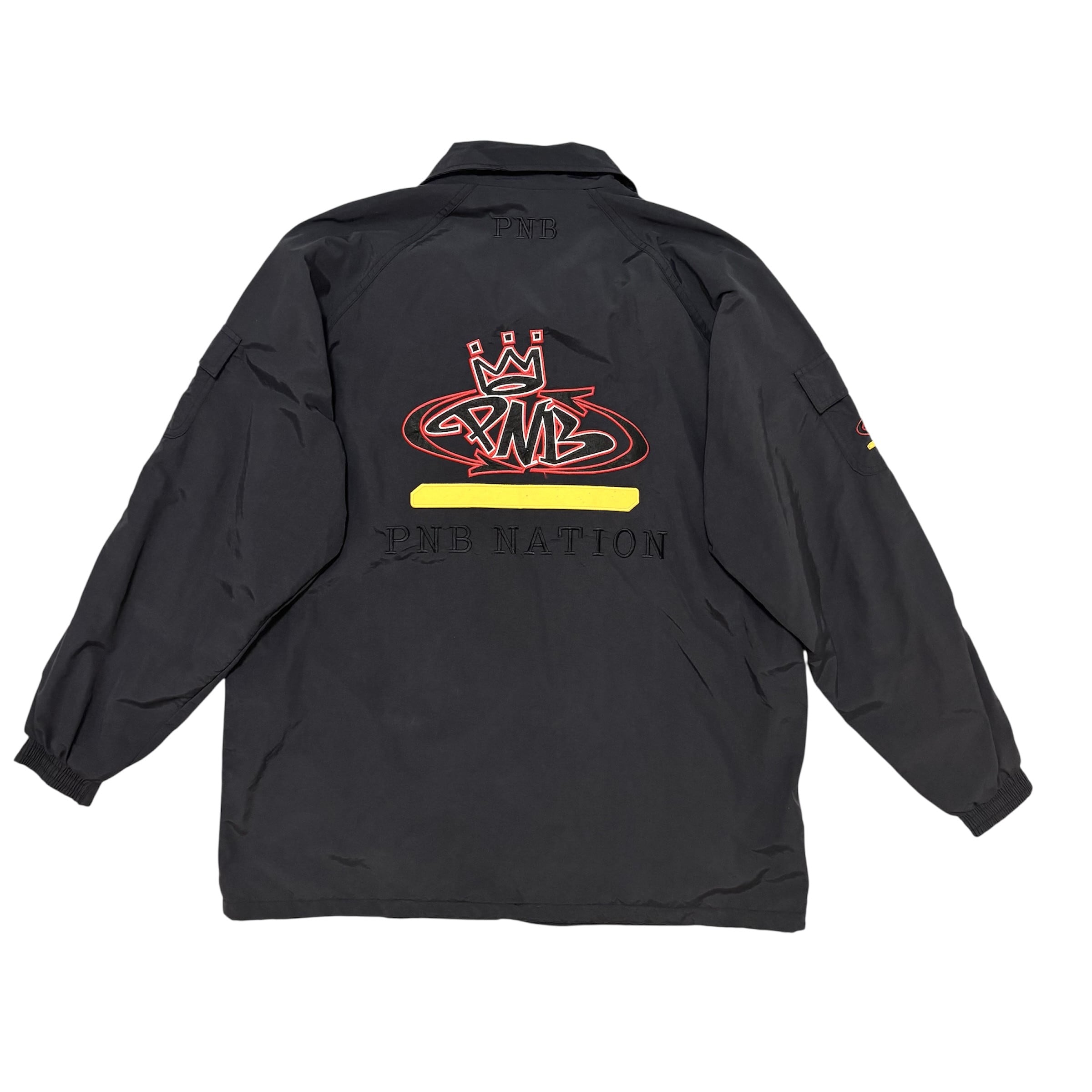 90年代のストリートカルチャーで絶大な人気を誇ったPNB NATIONのナイロンジャケット。HipHopアーティストからダンサー、スケーター、B-boy等、当時は様々なシーンで活躍した1着。