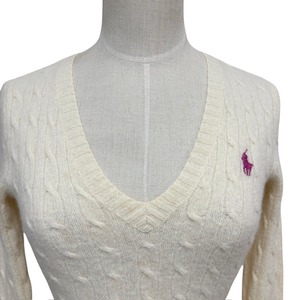 古着 ラルフローレン スポーツ RALPH LAUREN SPORT 長袖 Vネック セーター クリーニング済み アイボリー レディース Sサイズ