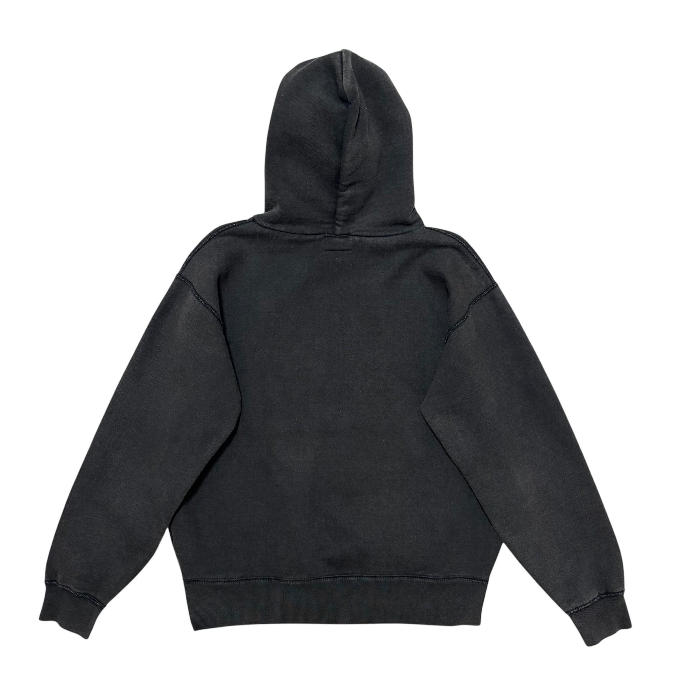 コットン80%・ポリエステル20%の柔らかなスウェット生地で、ウォッシュ感のあるブラックボディが特徴です。