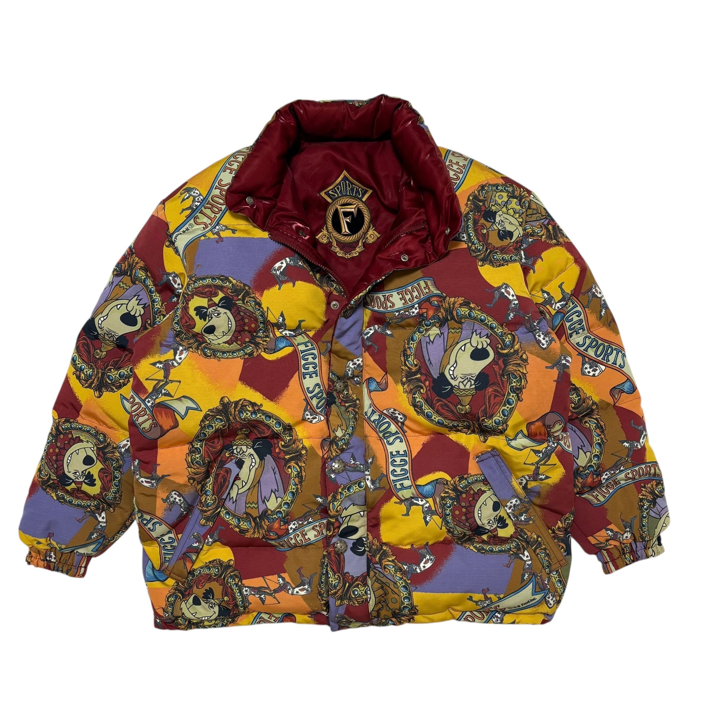ポップキャラクター“ケンケン”を総柄で配した、90sらしいユーモアとアート性が光る一着。ボリュームのあるシルエットと大胆なデザインが魅力のダウンジャケット。