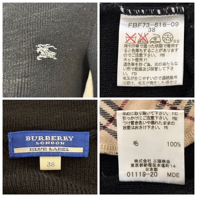 古着 バーバリーブルーレーベル BURBERRY BLUELABEL ニットジャケット カーディガン クリーニング済み 薄手 黒 レディース サイズ38