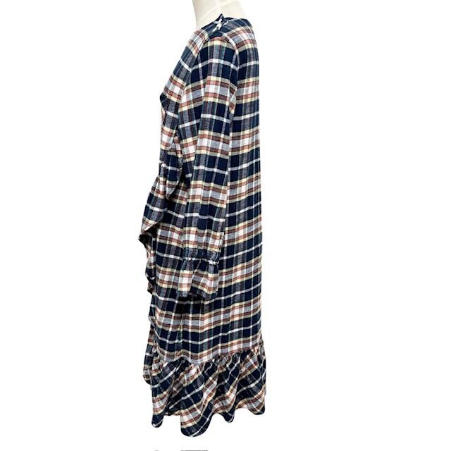 古着 ビームスボーイ BEAMS BOY ネルシャツワンピース クリーニング済み チェック柄 フリル切り替え レディース フリーサイズ