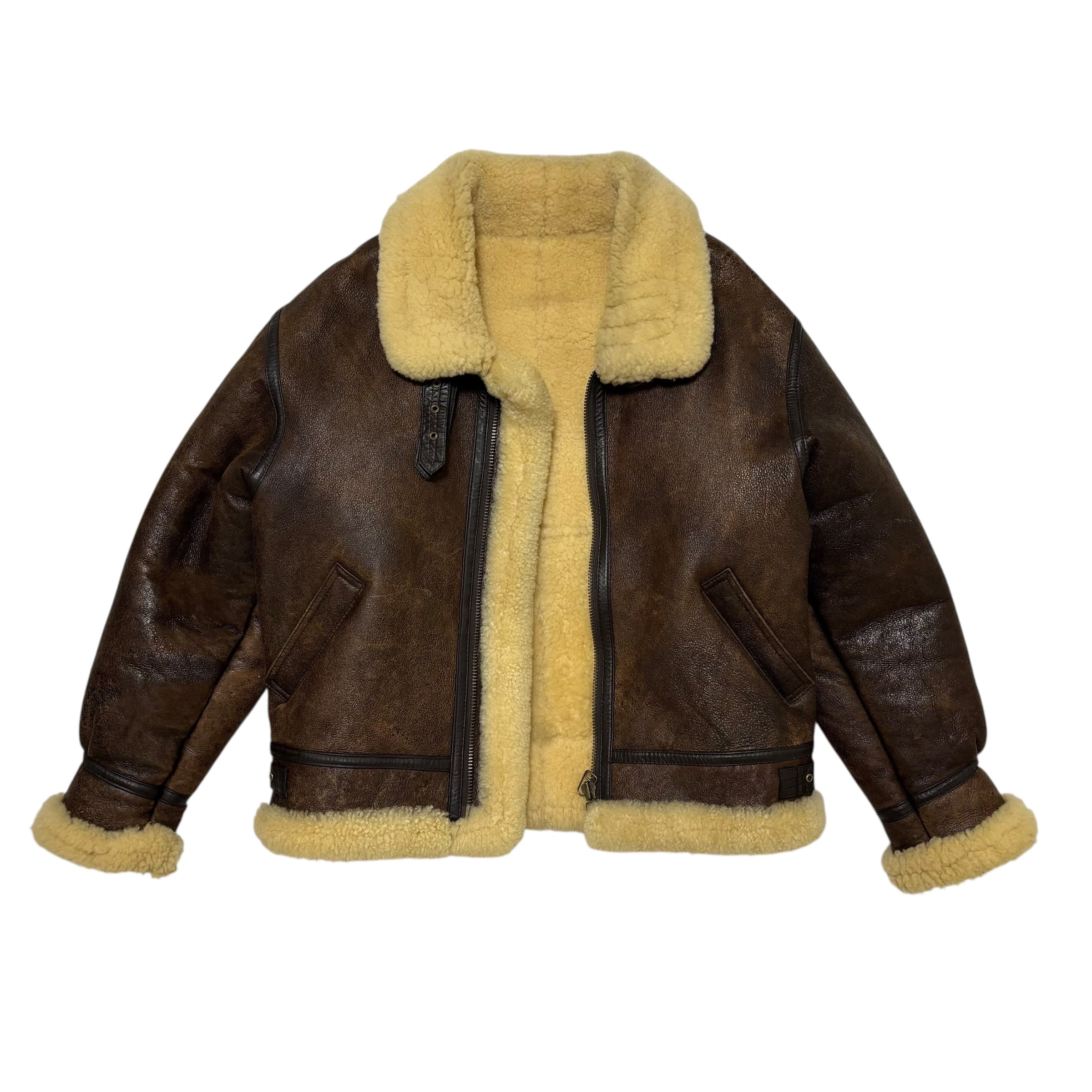 古着 TEXAS TANNING B-3 ムートンジャケット B3 フライトジャケット クリーニング済み 羊革 シープスキン メンズL