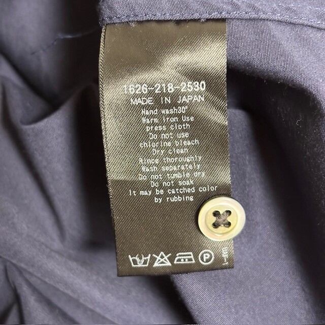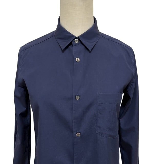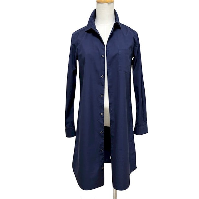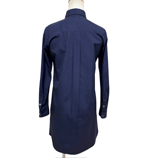 ベーシックなネイビーカラーの膝丈シャツワンピースです。