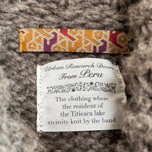 古着 アーバンリサーチドアーズ ペルー カーディガン クリーニング済み 厚手 グレージュ メンズ Mサイズ