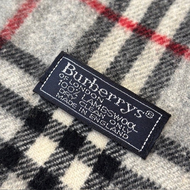 古着 バーバリーズ Burberrys マフラー クリーニング済み ノバチェック柄 ラムズウール 100% イングランド製 ライトグレー 男女兼用