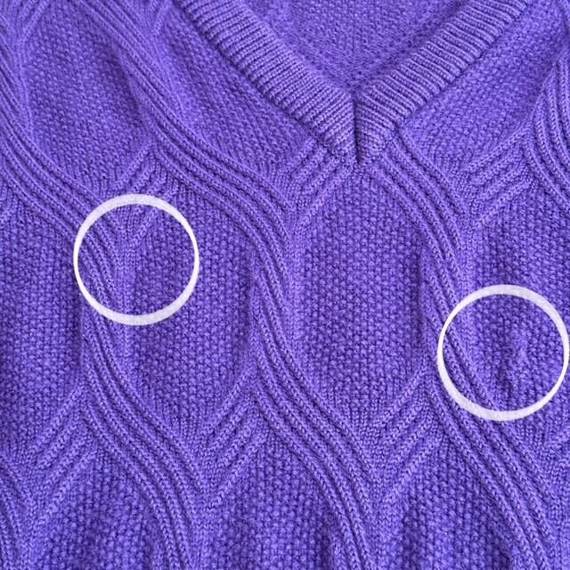 パープルをベースに、立体的な3D編み、袖先は手編み風の切り替えとなってます。