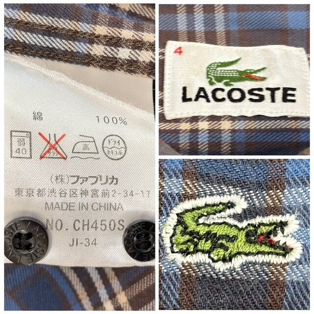 古着 ラコステ LACOSTE 長袖 ボタンダウンシャツ クリーニング済み チェック総柄 メンズ サイズ4