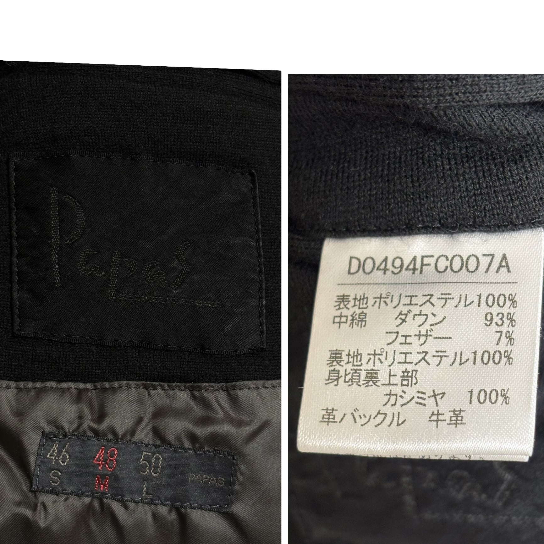 古着 パパス Papas ダウンコート クリーニング済み メンズ 48 Mサイズ 黒 ブラック