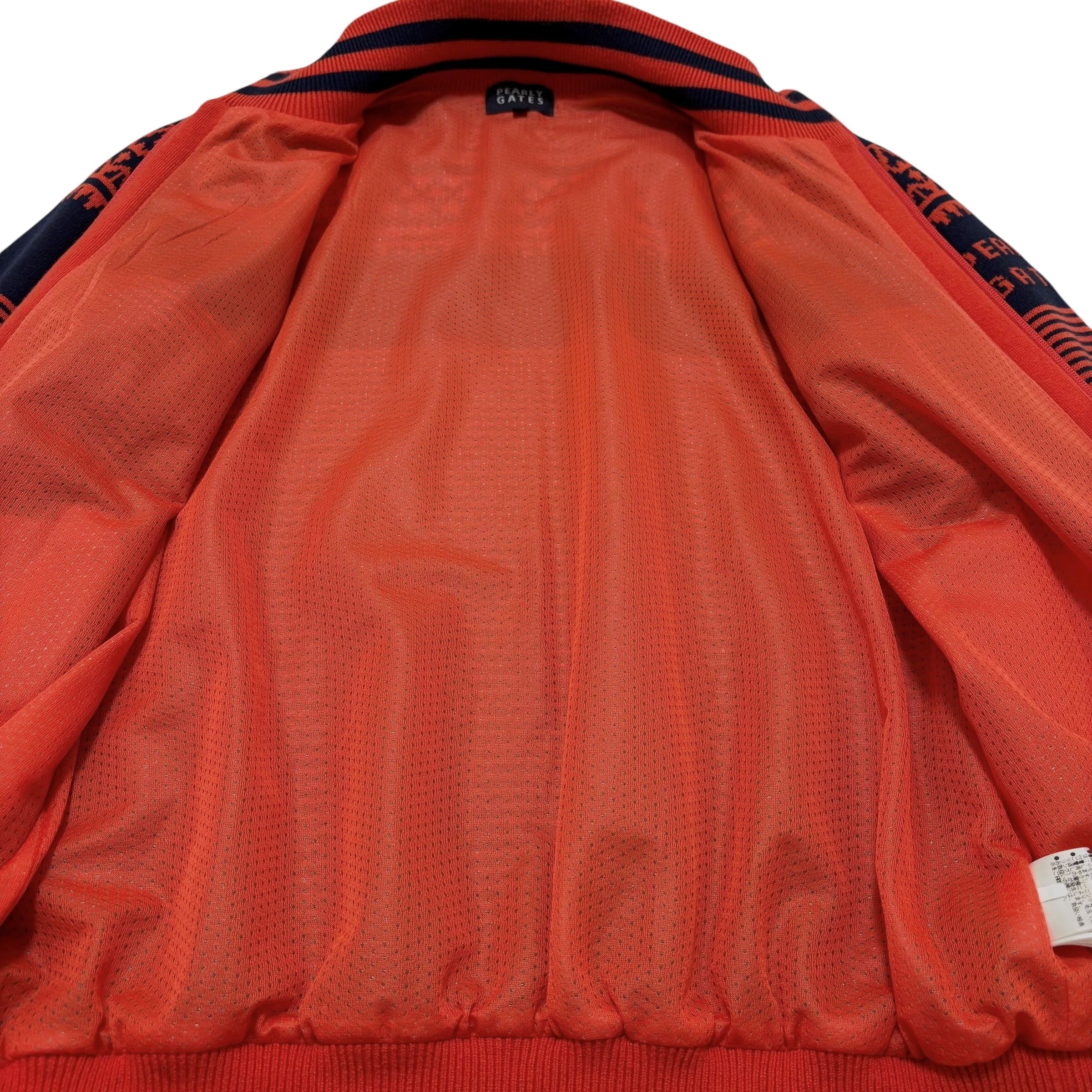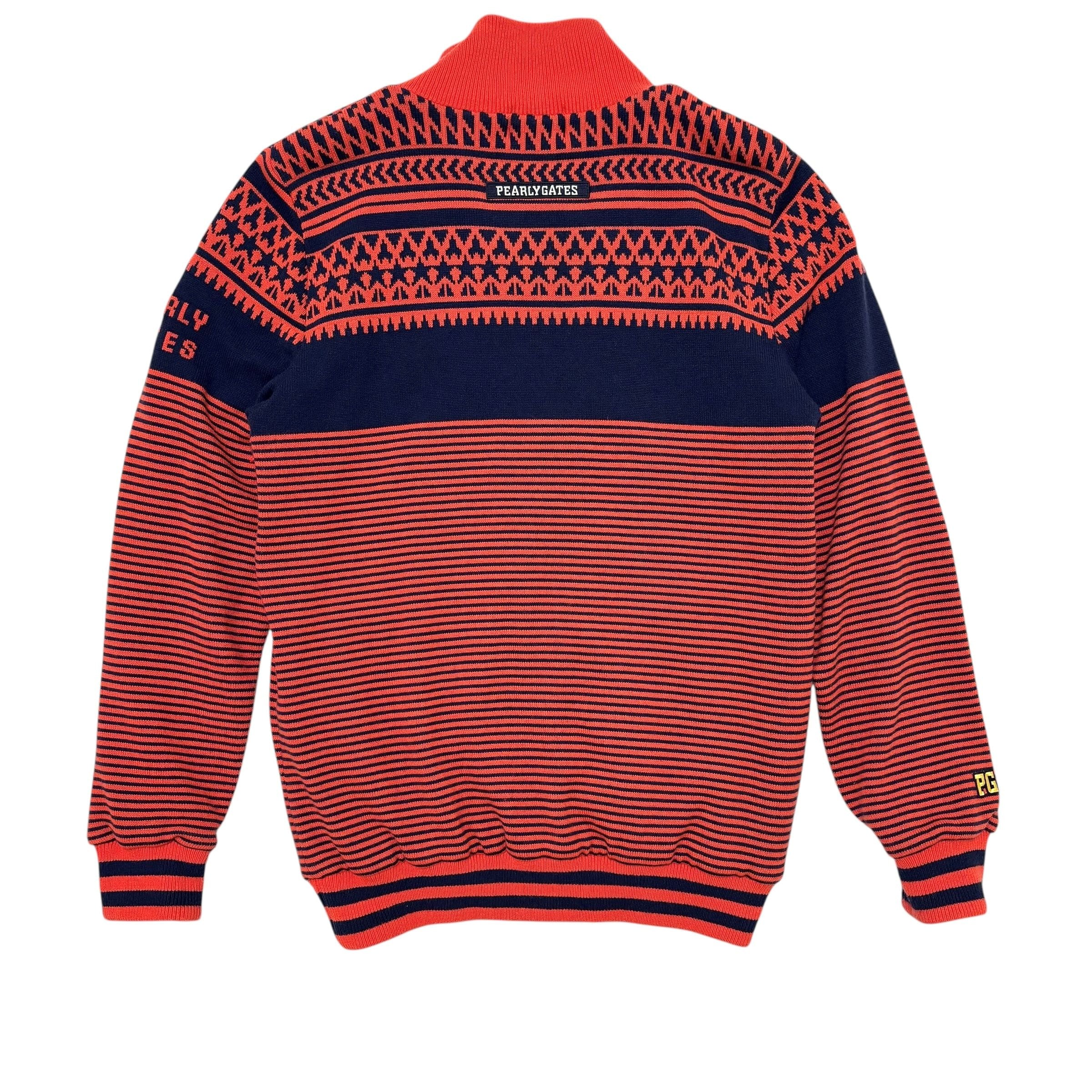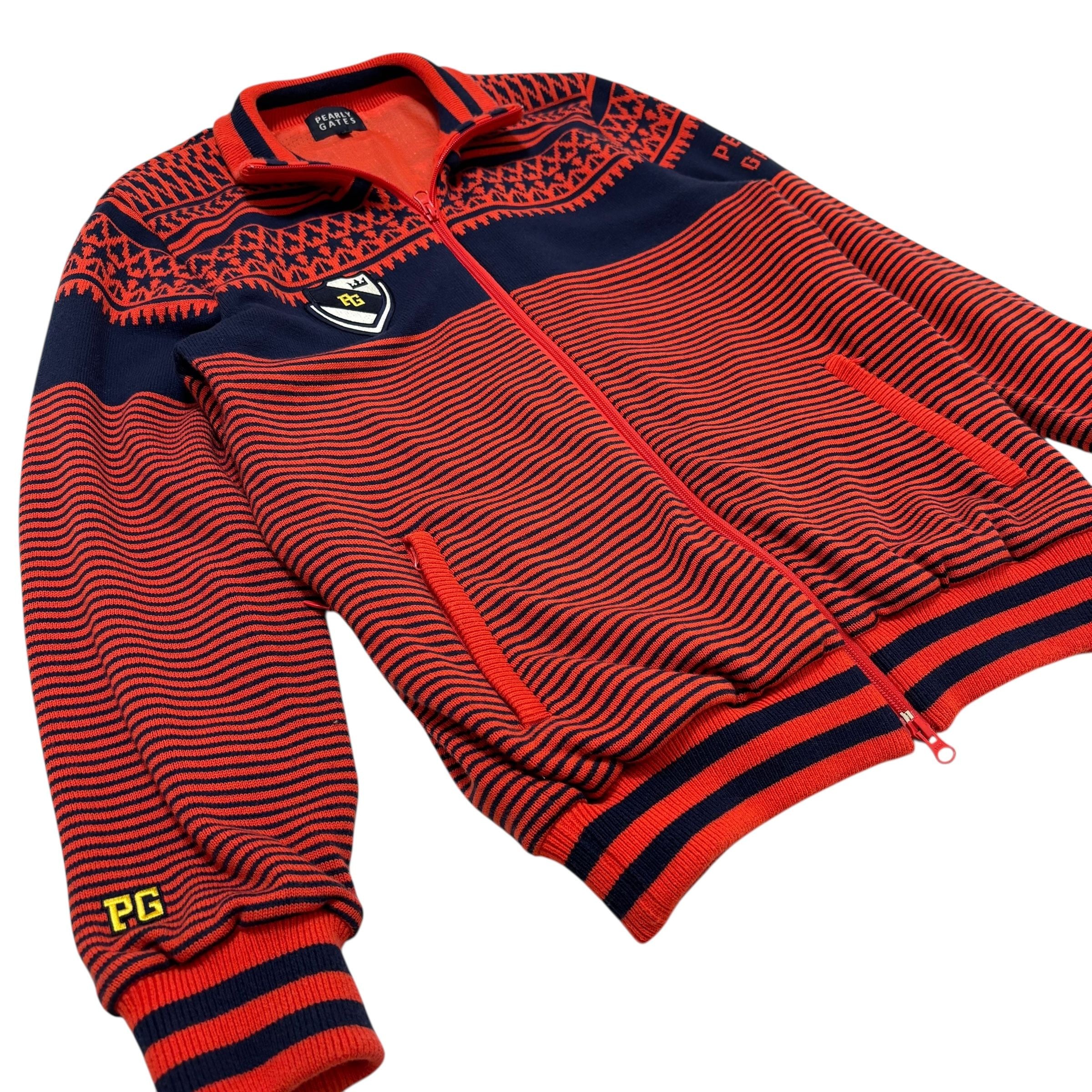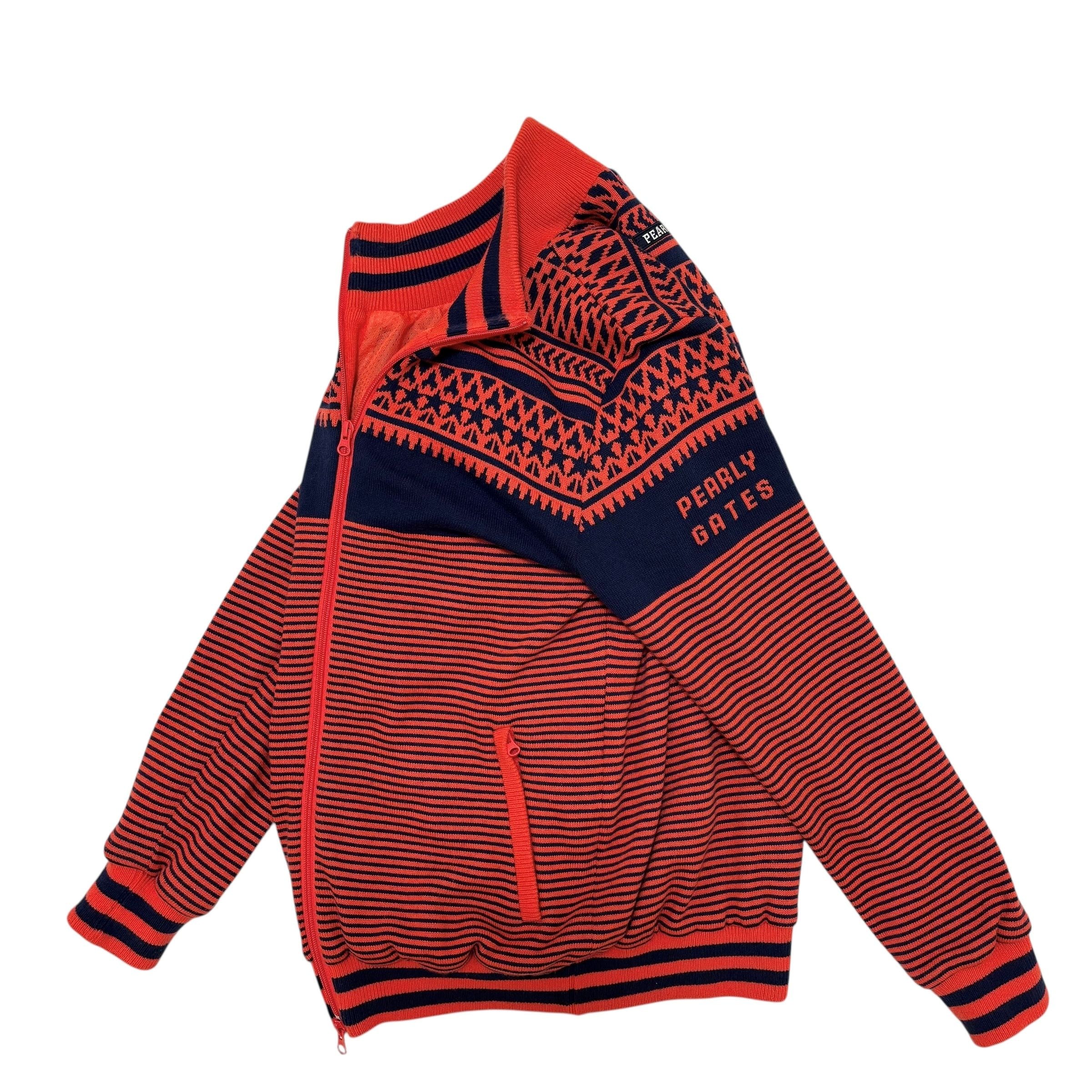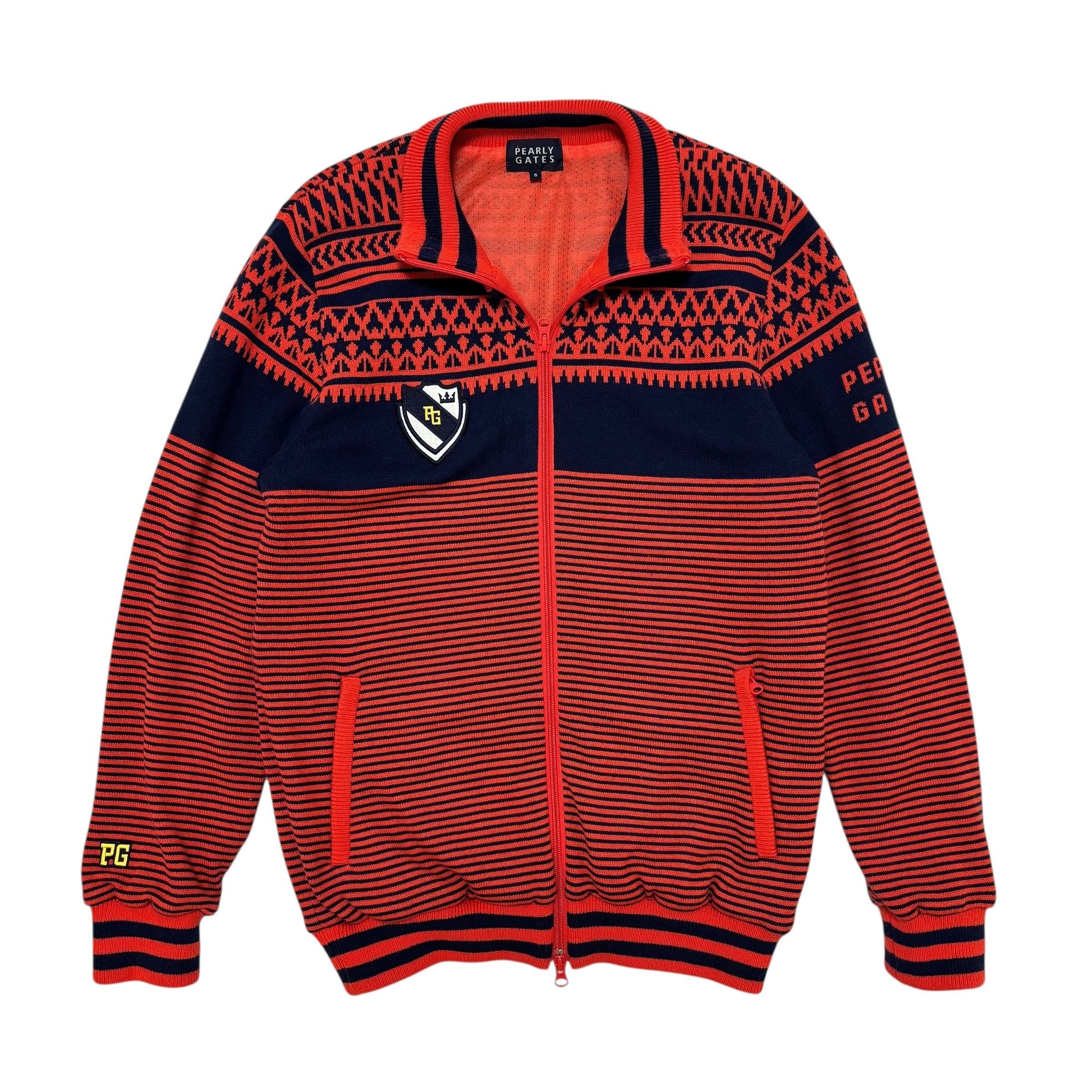 赤と紺の切り替えが印象的な、PEARLY GATESのニットブルゾンです。