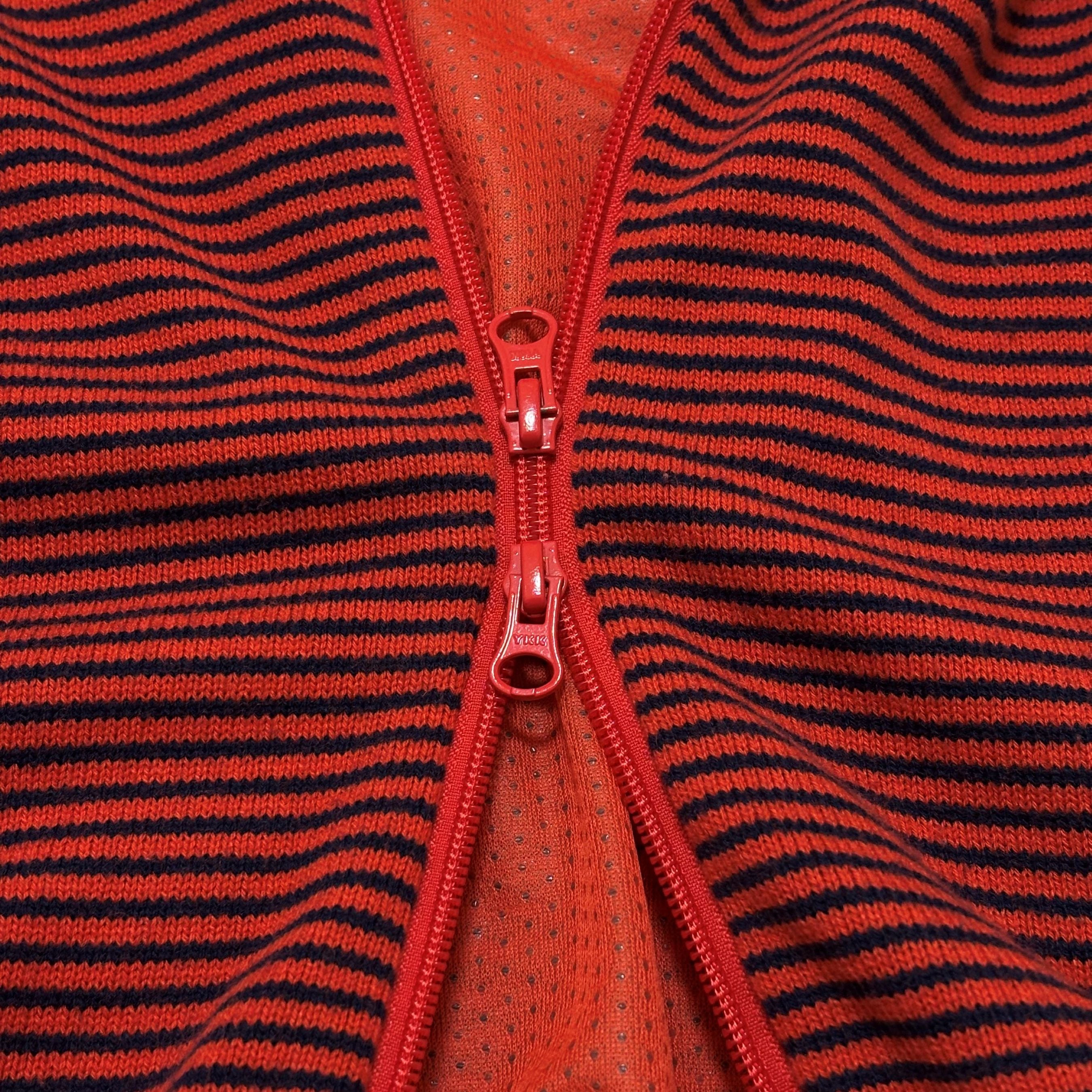 フロントは使い勝手のよいダブルジップ仕様で、着こなしの幅が広がる一着。裏地はメッシュで軽やかに、ウール混の柔らかな風合いが心地よく寄り添います。当店実寸値Mサイズ相当。