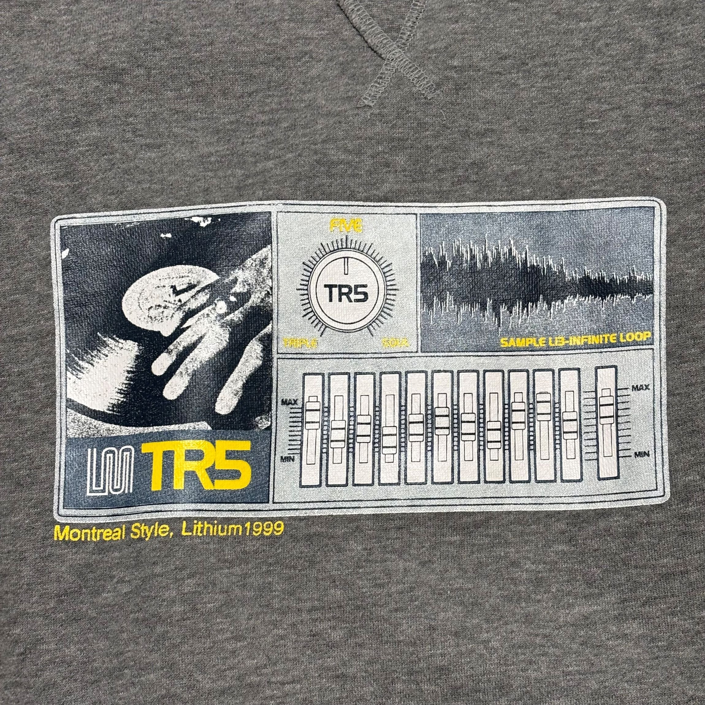 音楽機材を思わせるグラフィックが印象的な、TRIPLE FIVE SOULのスウェット。