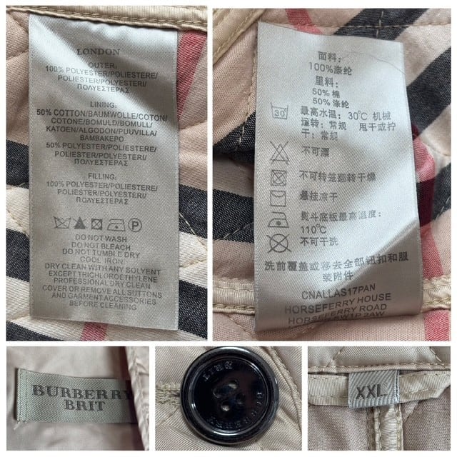 古着 バーバリー ブリット BURBERRY BRIT キルティングジャケット クリーニング済み ベージュ レディース 大きいサイズ XXL