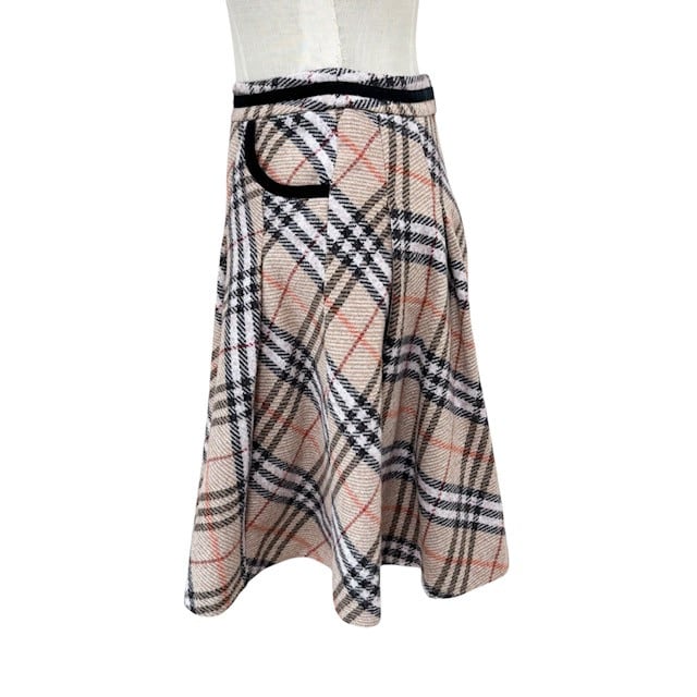 アイコニックなノバチェック柄の膝丈スカートになります。