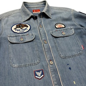 古着 ネイバーフッド NEIGHBORHOOD デニムシャツ クリーニング済み インディゴ ユーズド加工 刺繡ワッペン メンズM