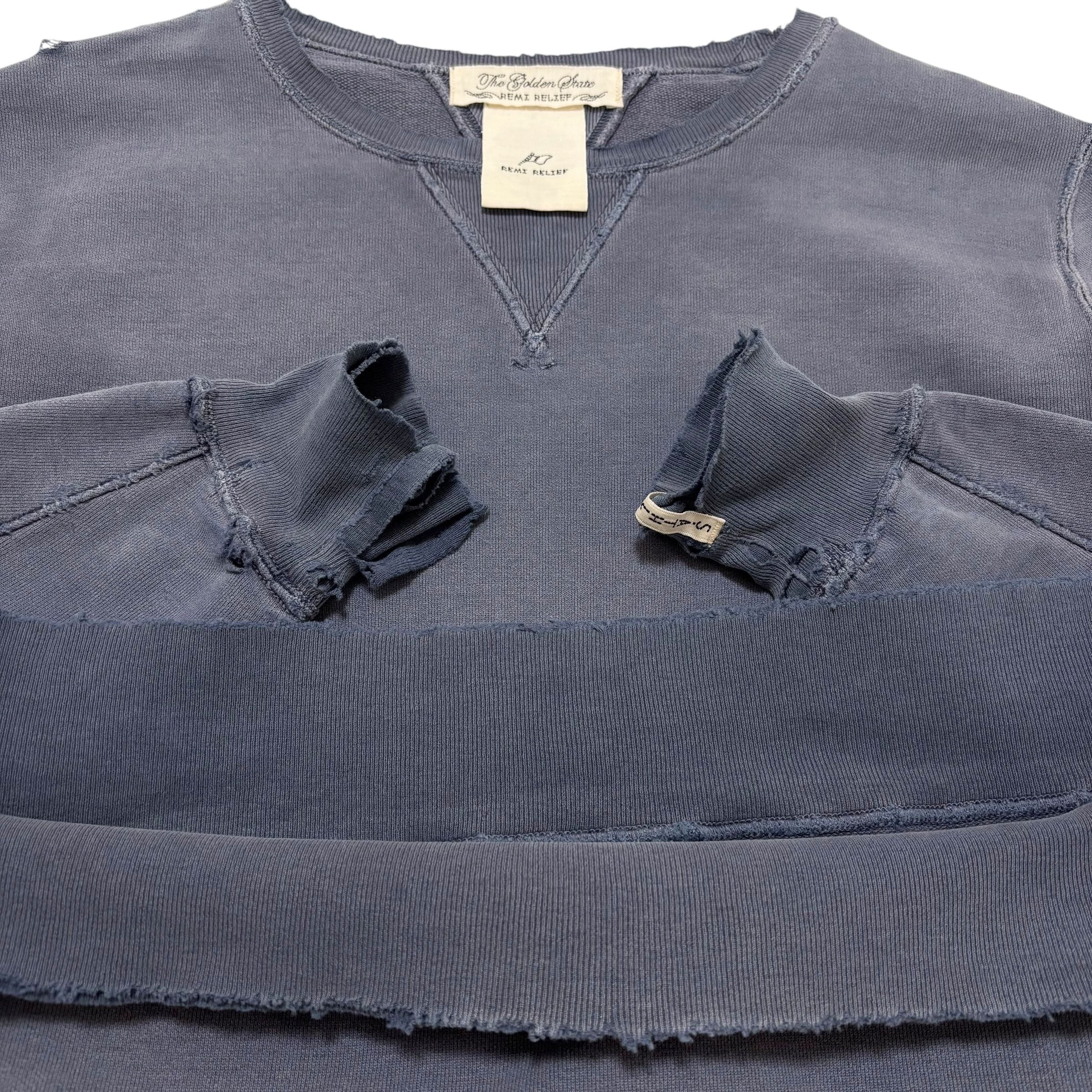 古着 レミレリーフ REMI RELIEF ダメージ加工 スウェット トレーナー クリーニング済み 茄子紺 両Vガゼット メンズS 実寸M