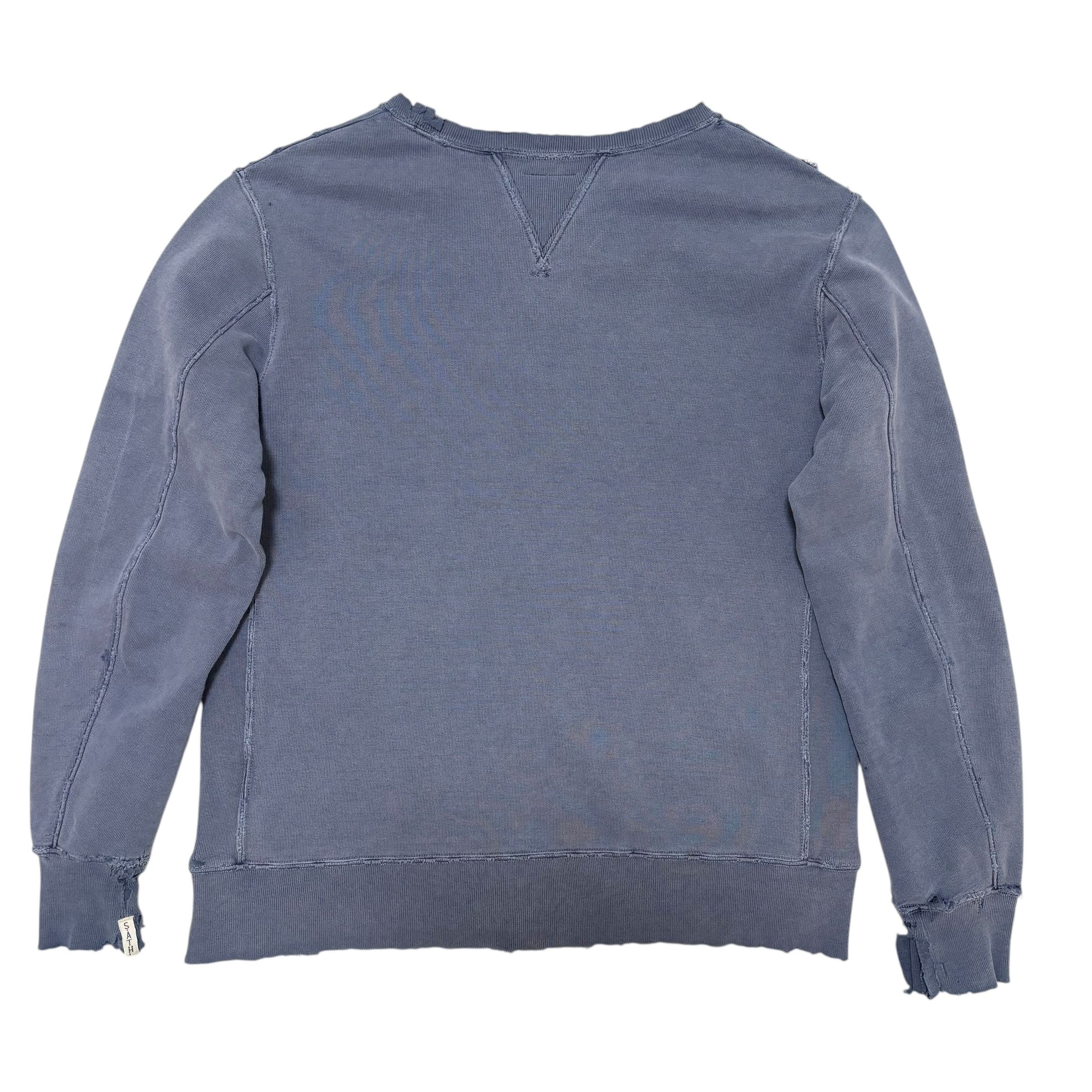 茄子紺の落ち着いた色味に、自然なフェード感が重なったスウェットトレーナー。