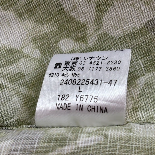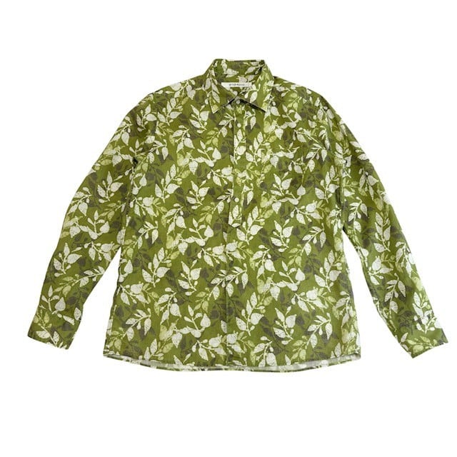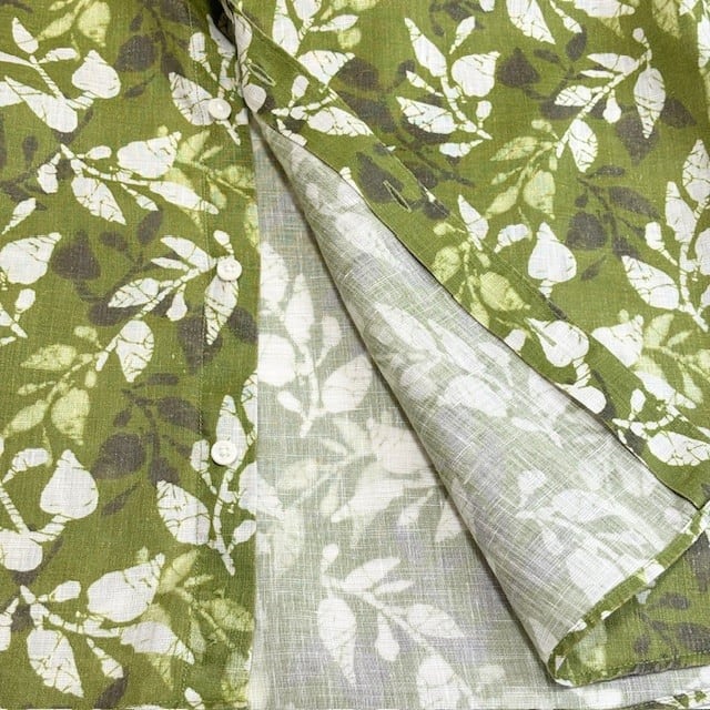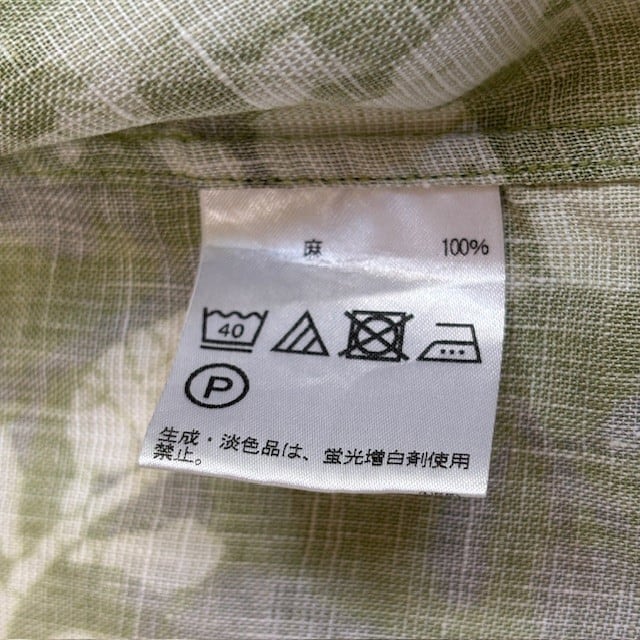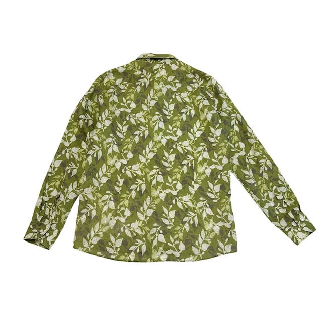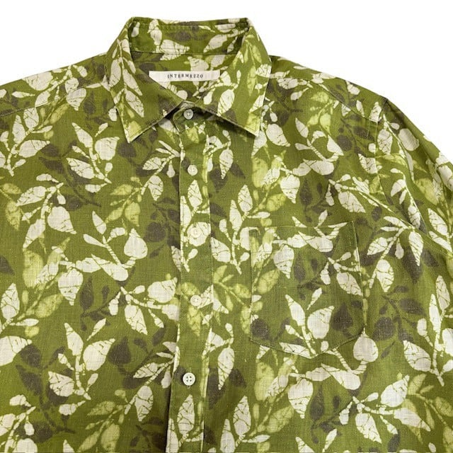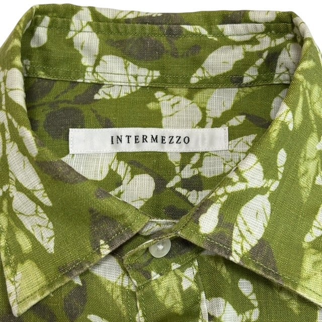 古着 インターメッツォ INTERMEZZO 長袖シャツ クリーニング済み リネン ボタニカル柄 緑 メンズ Lサイズ