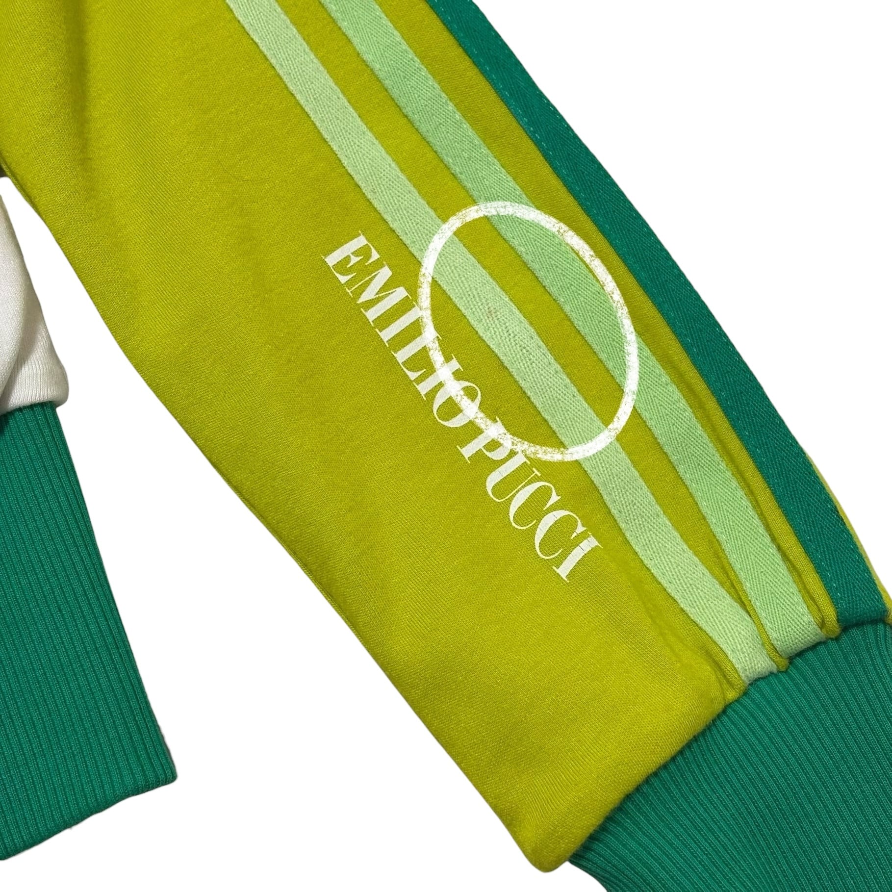 柔らかなスウェット素材で仕立てられ、グリーンとホワイトの配色に、プッチらしいアートワークが静かに映える一着です。