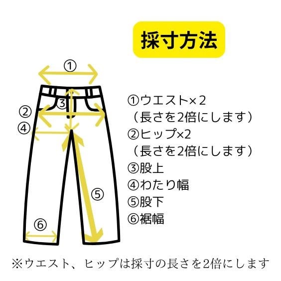 実寸サイズ/ウエスト38cm/ヒップ幅49.5cm/股上23cm/股下68cm/わたり30cm/裾幅18.5cm