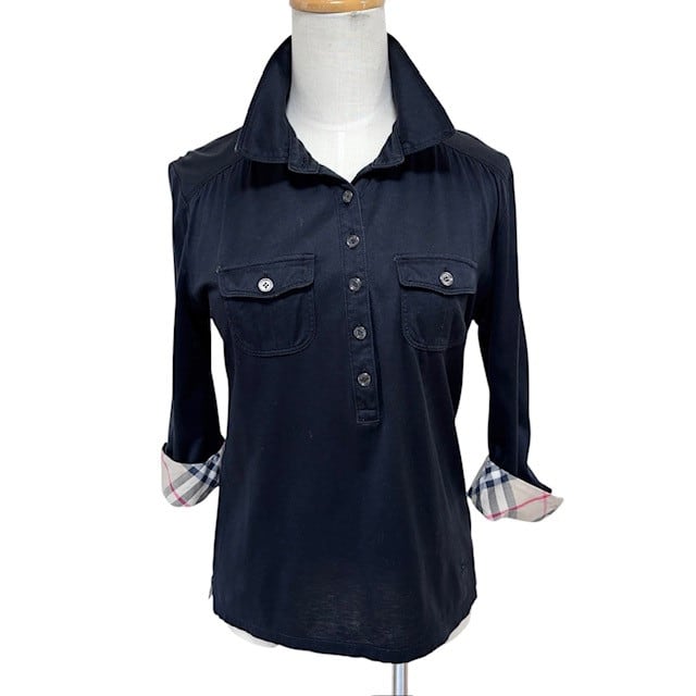 古着 バーバリーロンドン BURBERRY LONDON 七分袖シャツ クリーニング済み 黒 ノバチェック レディース サイズ2