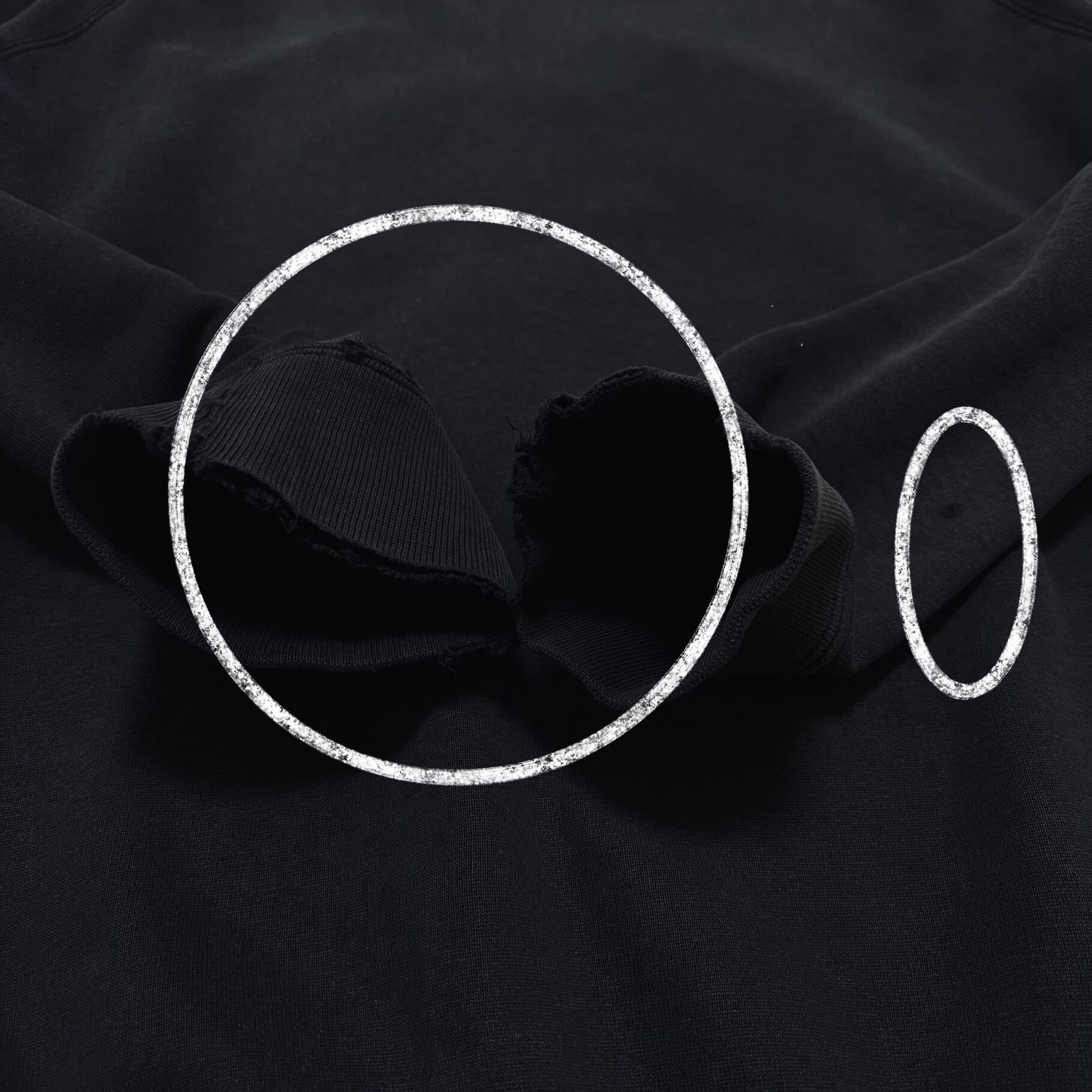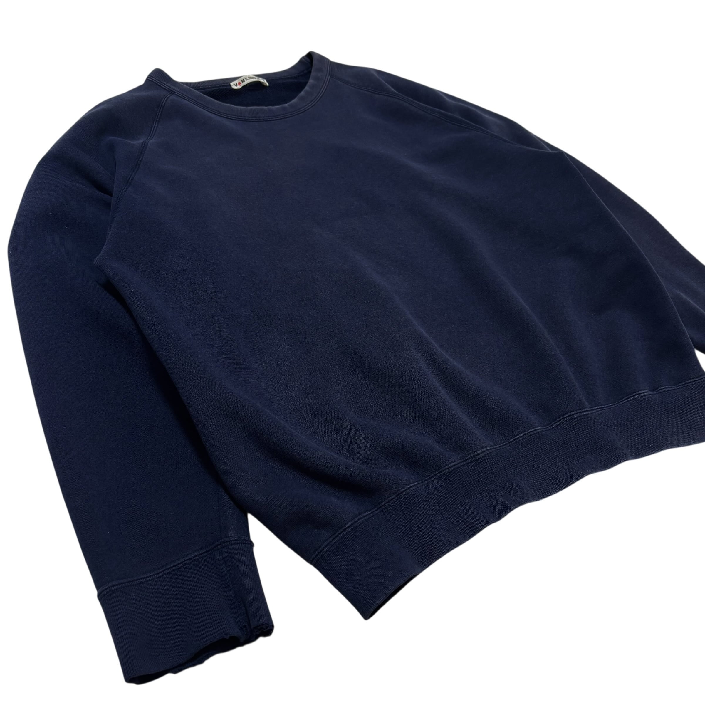 色褪せたネイビーに、袖先のダメージが映えるグランジテイスト。