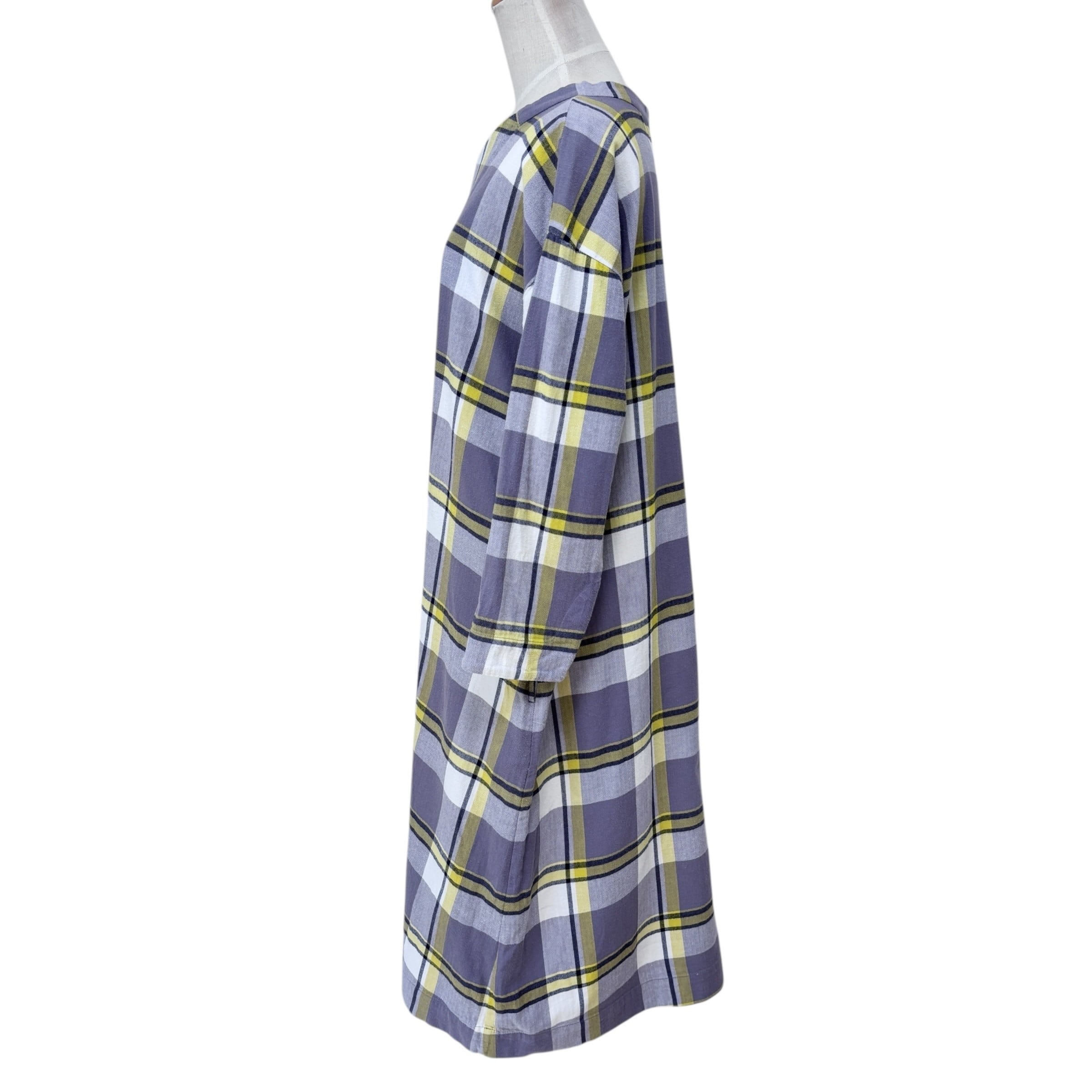 柔らかな薄手コットン素材を使用した、大柄のチェックが目を惹くワンピースです。