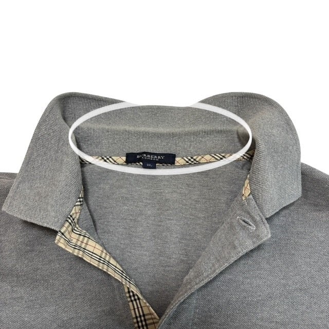 古着 バーバリーロンドン BURBERRY LONDON 半袖ポロシャツ クリーニング済み グレー ノバチェック柄 メンズ 大きいサイズ 2L