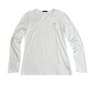シンプルなホワイトのコットン地をベースに、さりげないスモールロゴプリントがアクセントになったロングスリーブTシャツ。