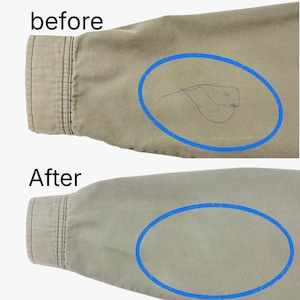 シミ抜きとクリーニングで整えていますが、わずかにシミが残る部分もあります。