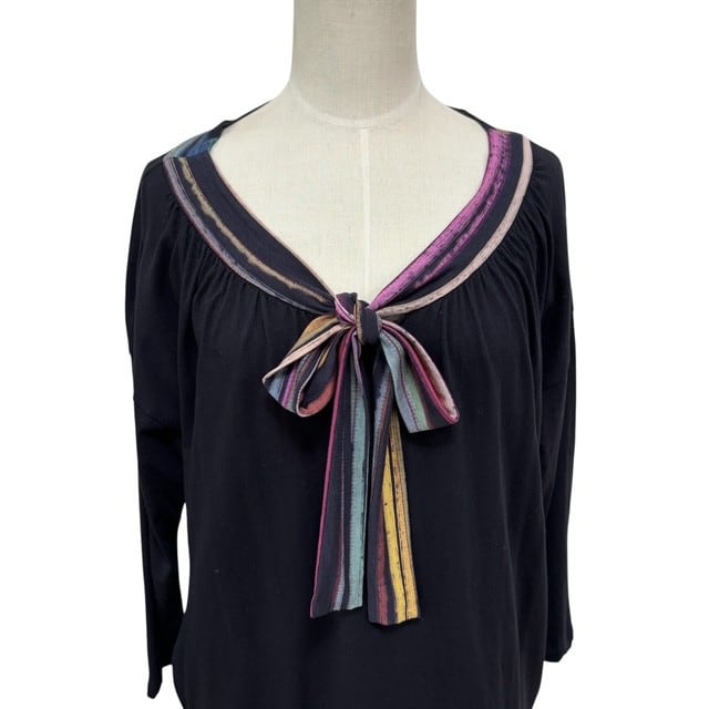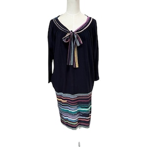 古着 ポールスミス PaulSmith チュニック ワンピース クリーニング済み 七分袖 マルチカラー×黒 レディース Mサイズ