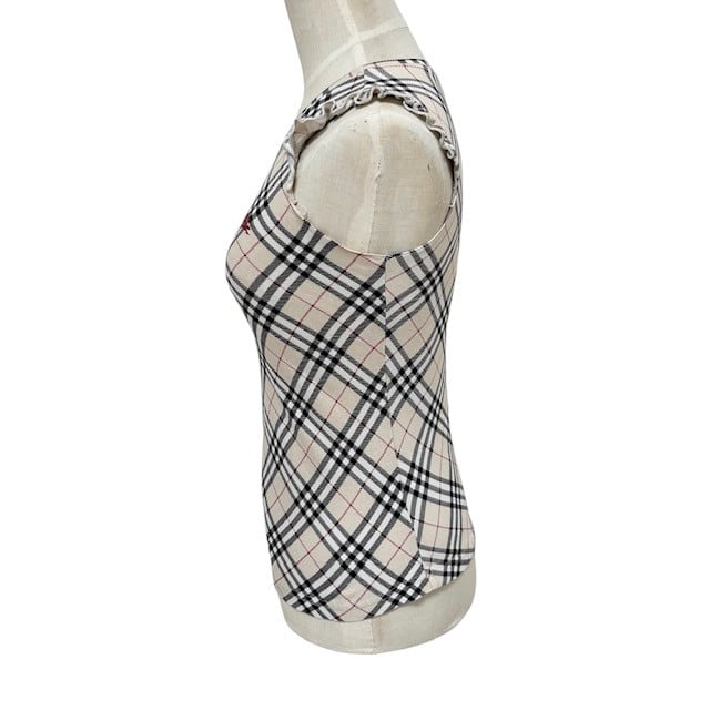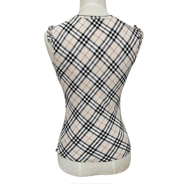 古着 バーバリーブルーレーベル BURBERRY BLUELABEL ノバチェック柄 タンクトップ クリーニング済み フリル付き レディース サイズ36