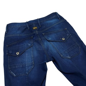 こちらの G-STAR RAW のデニムは、立体裁断・3Dならではの曲線的なシルエットと、フラップ付きポケットが特徴です。
