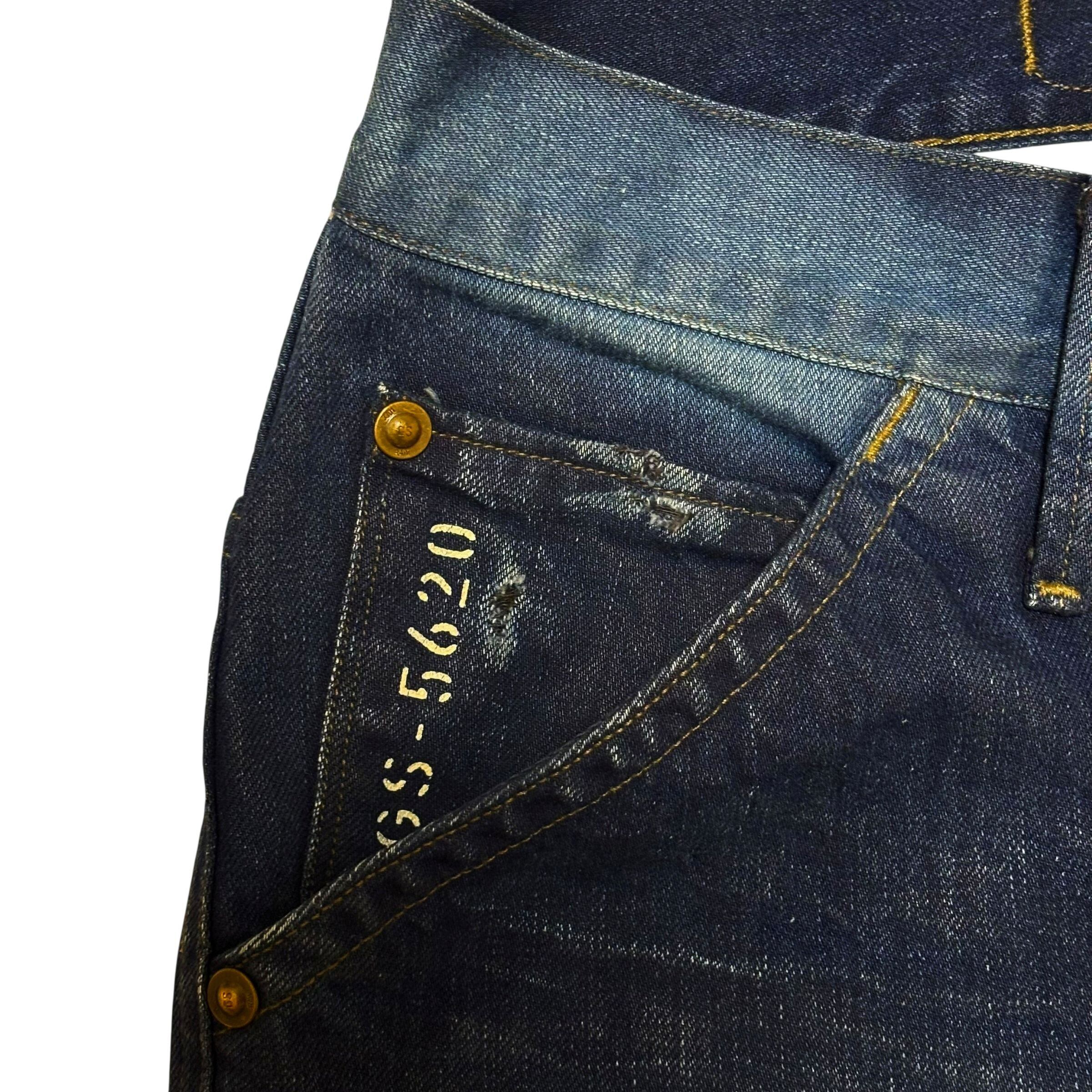 備考:ダメージ加工品ですが、古着デニム特有の使用感あり。
