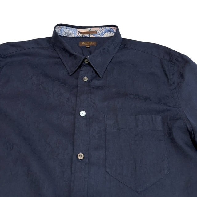 古着 ポールスミス コレクション PaulSmith 半袖シャツ クリーニング済み ネイビー 花柄 メンズ XLサイズ